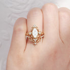 Vintage Inspired Marquise Cut Moissanite Unique Cluster Engagement Ring Bridal Set 2pcs