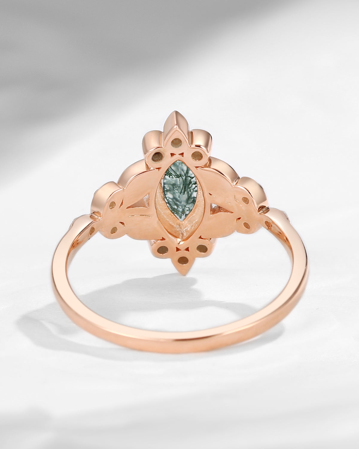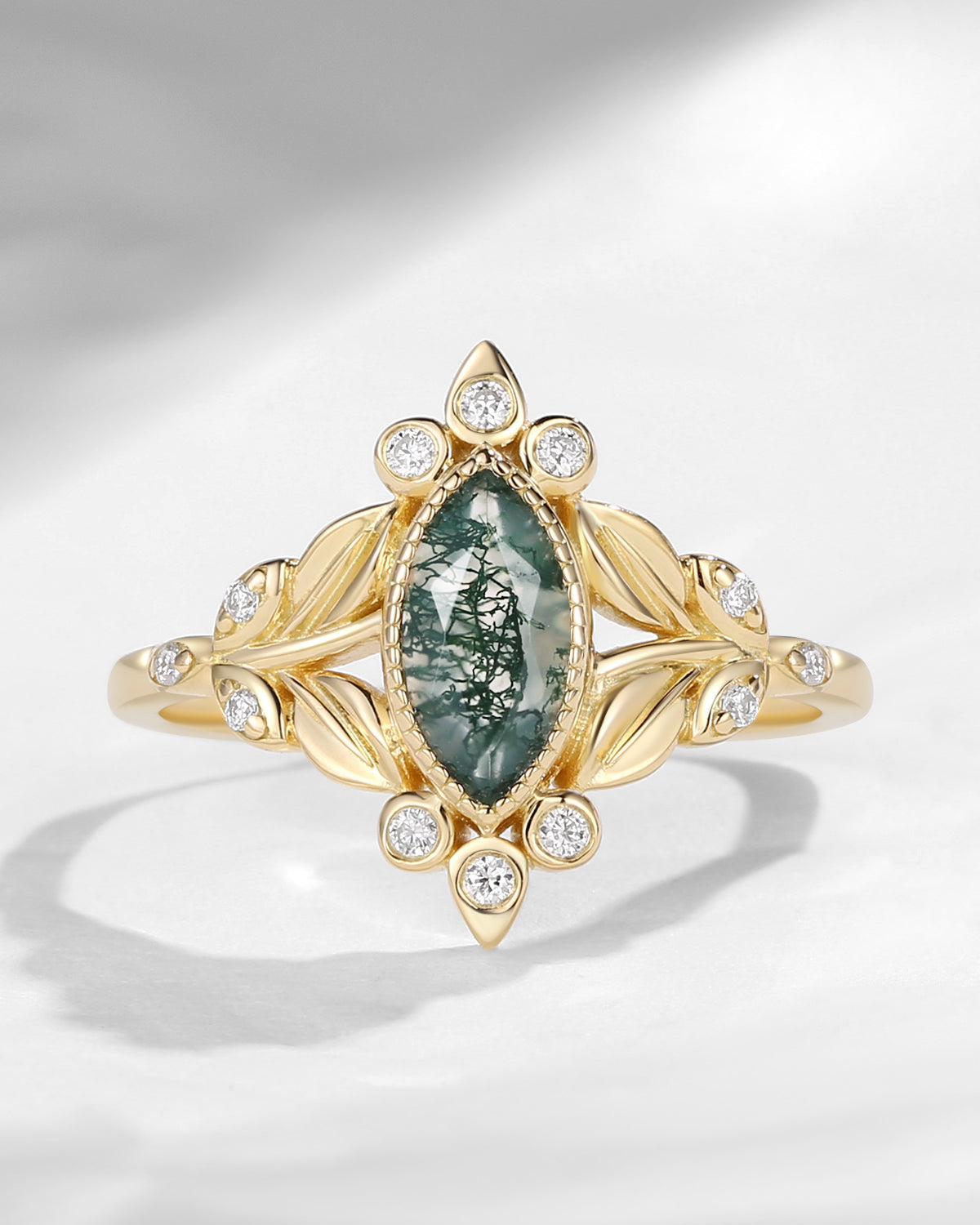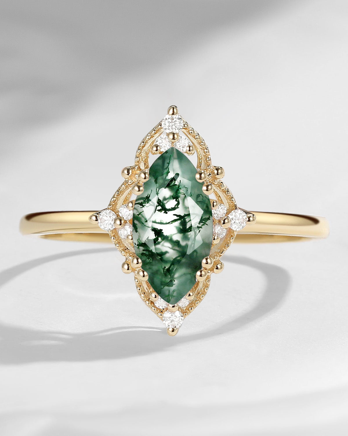 18K Marquise Vintage Inspired Moss Agate Engagement Ring