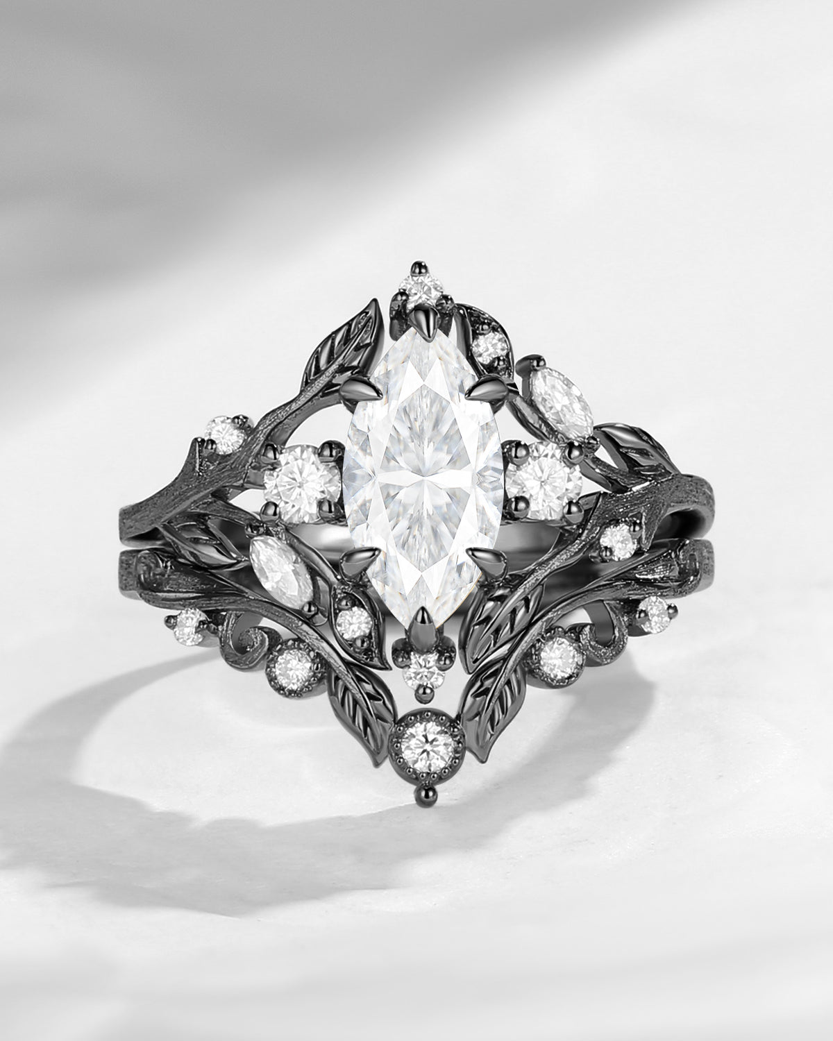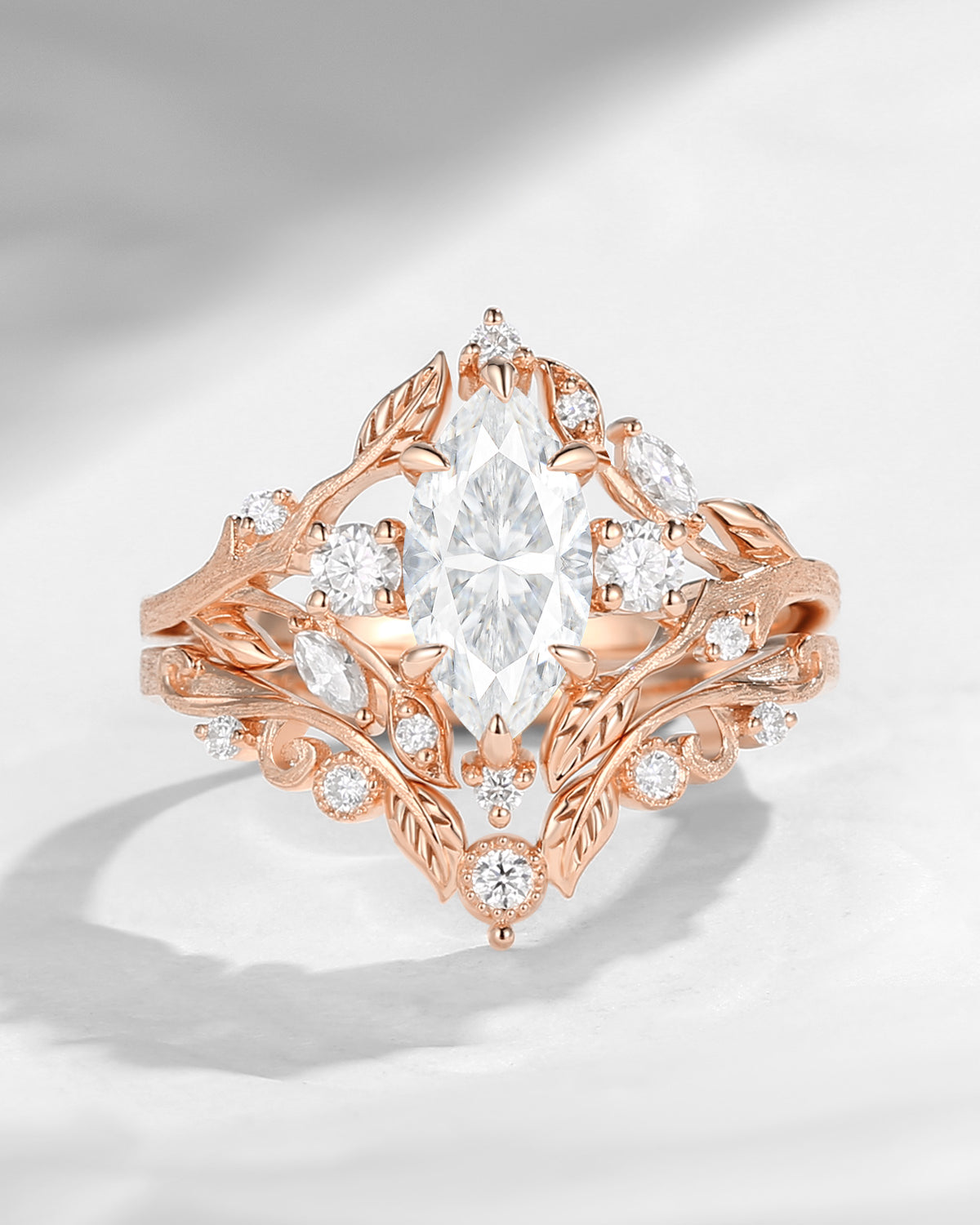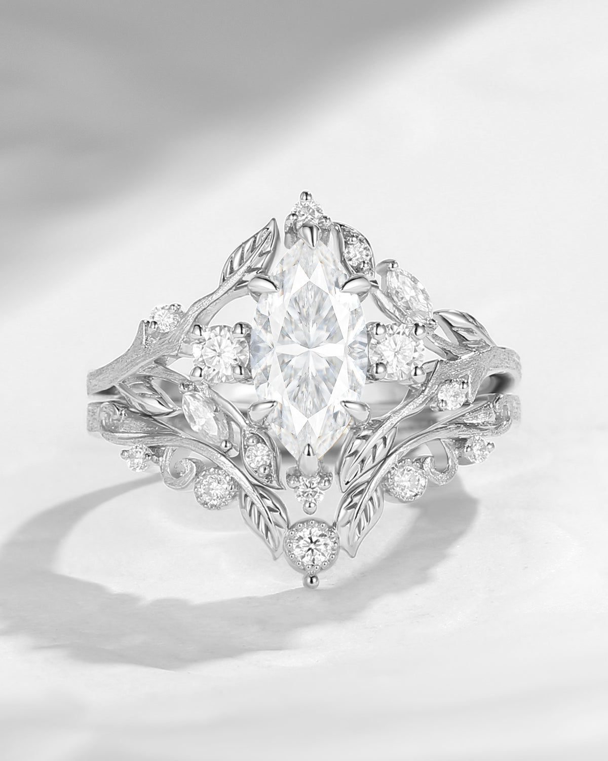 Nature Inspired Marquise Moissanite Garden Engagement Ring Set 2pcs