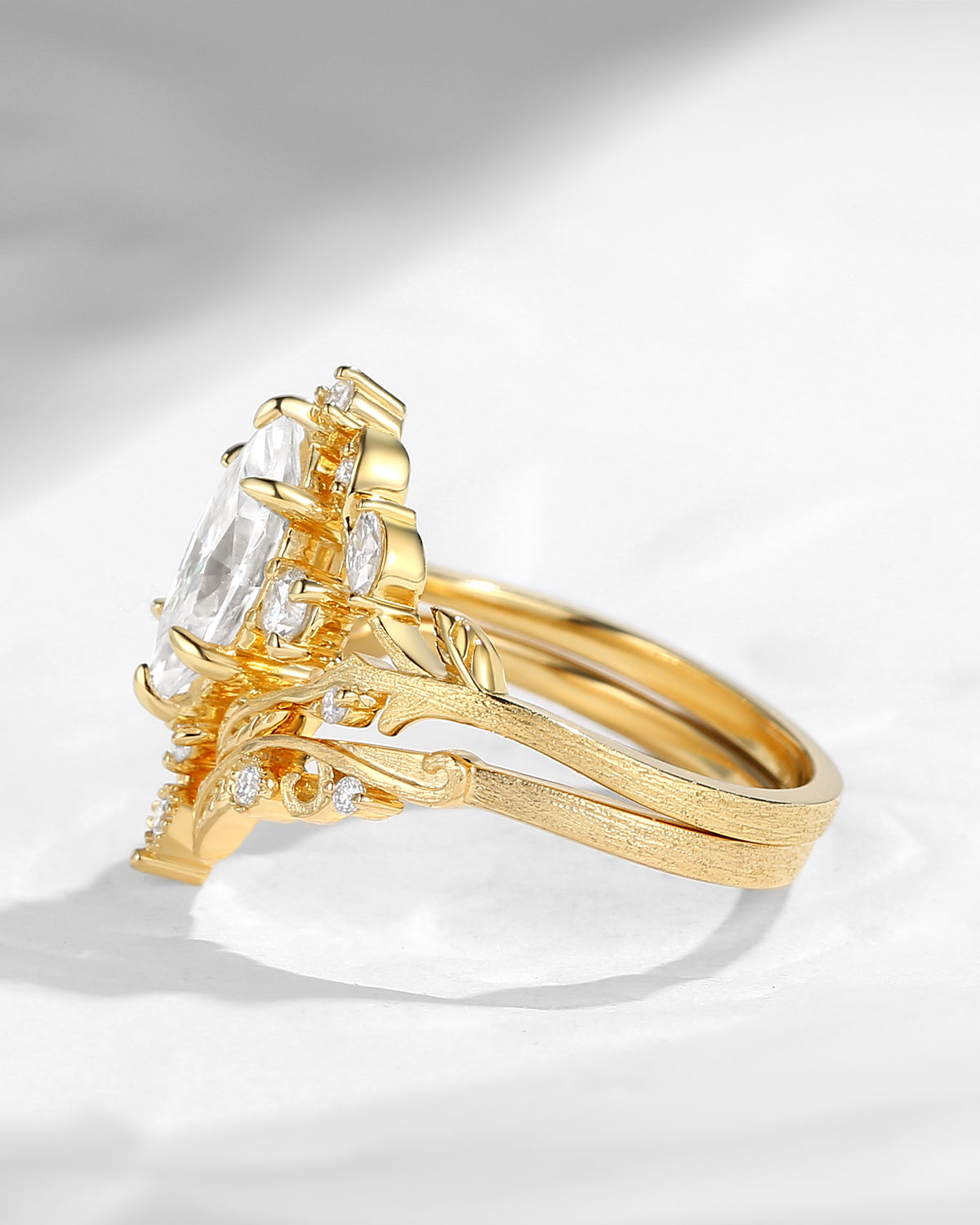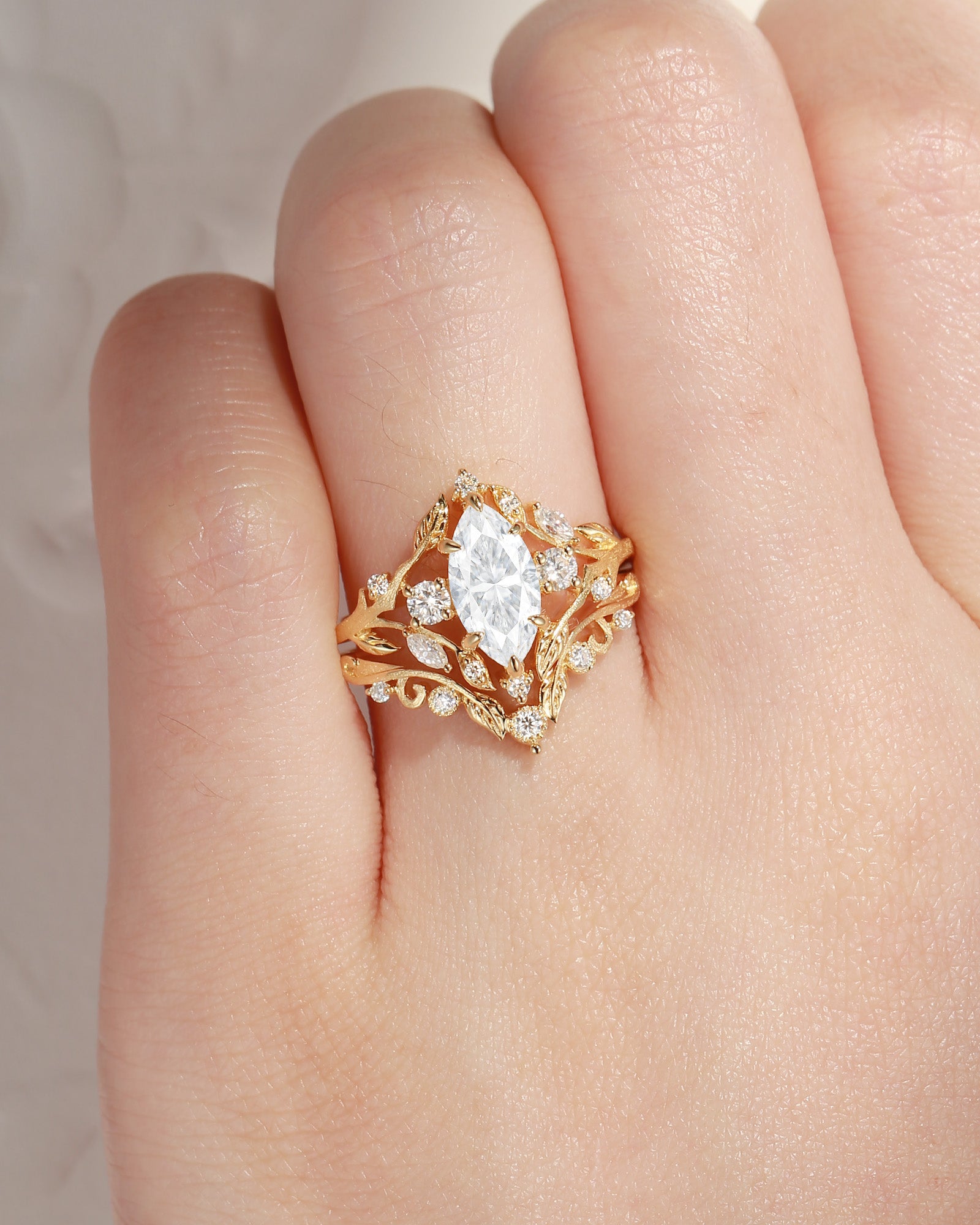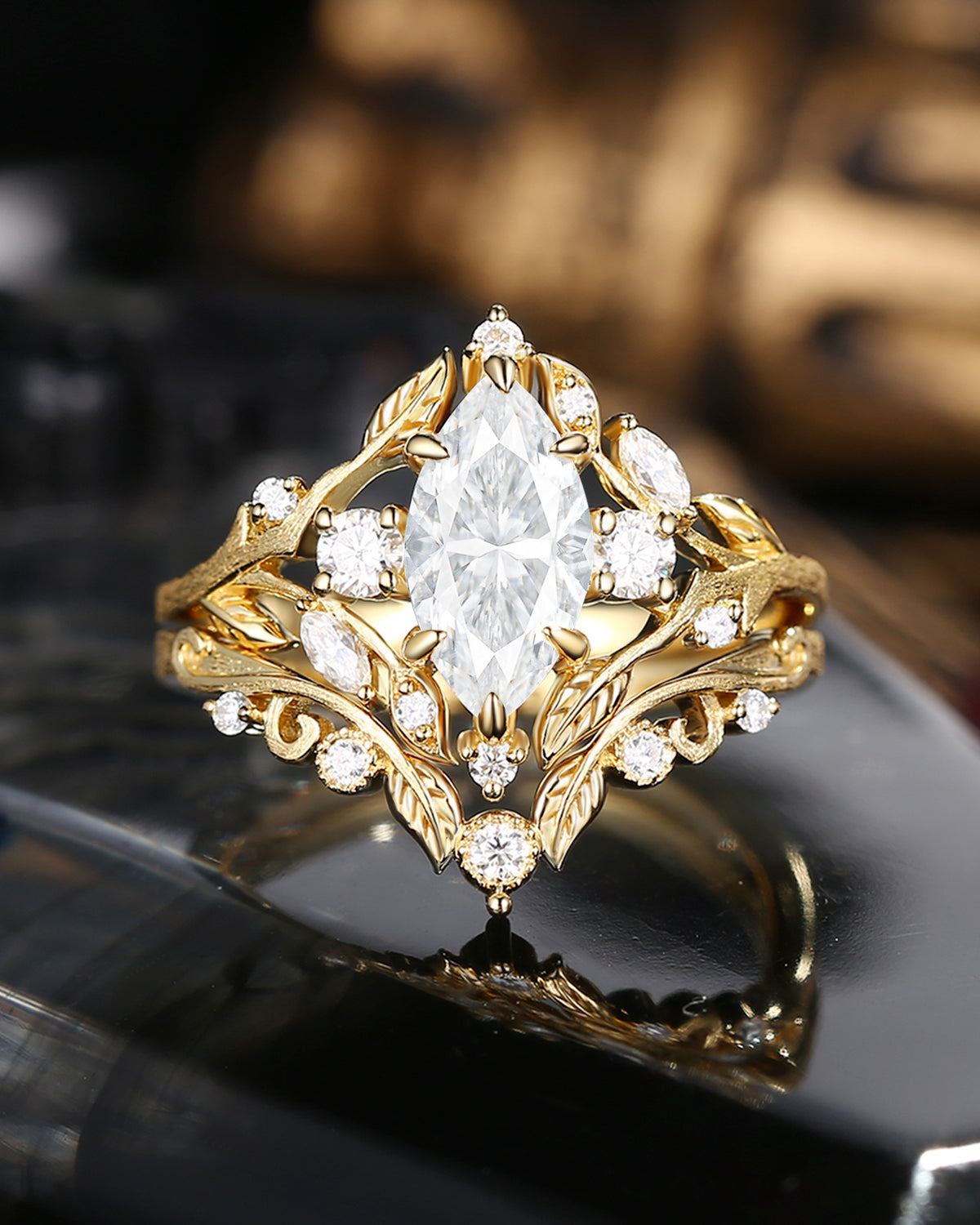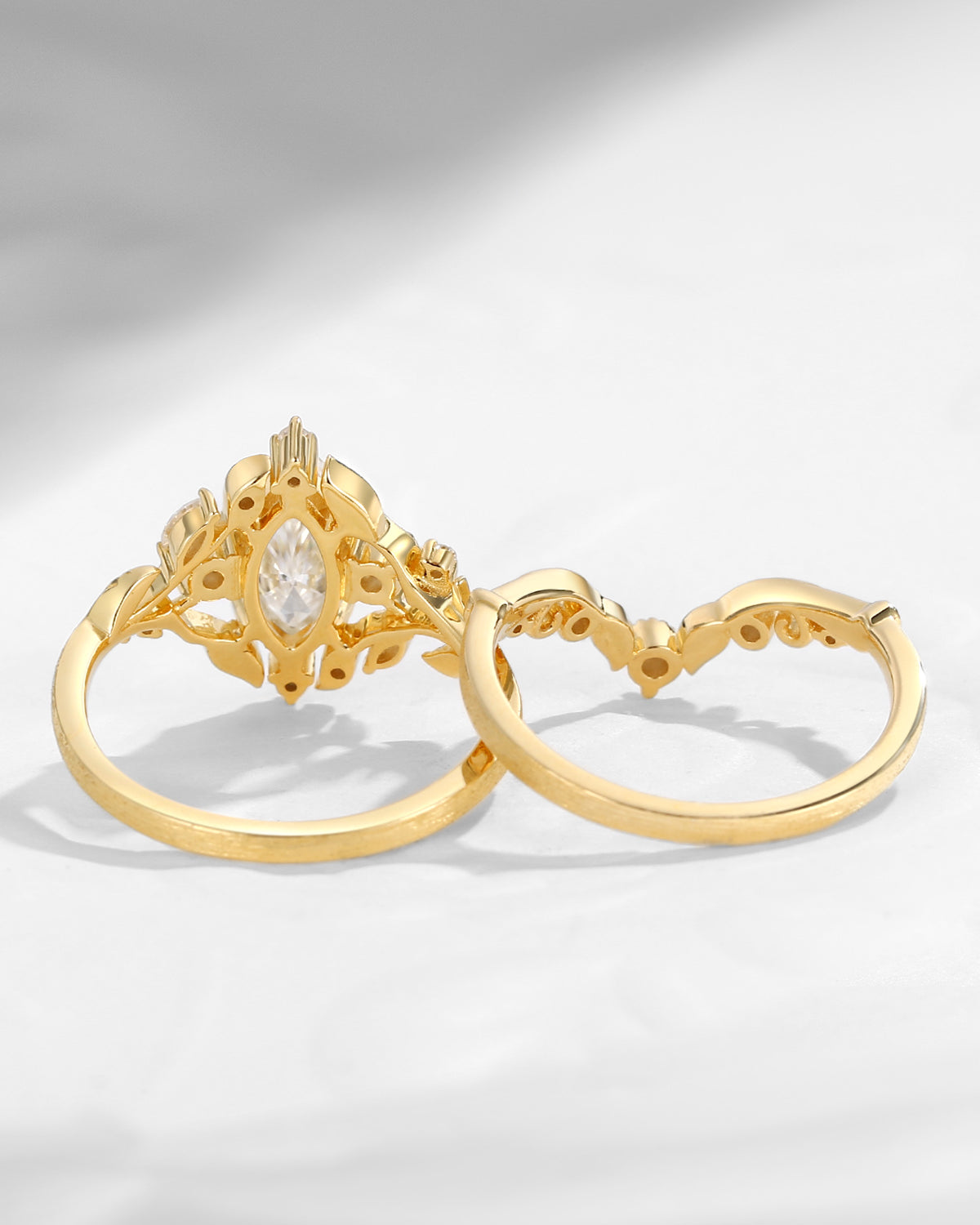Nature Inspired Marquise Moissanite Garden Engagement Ring Set 2pcs
