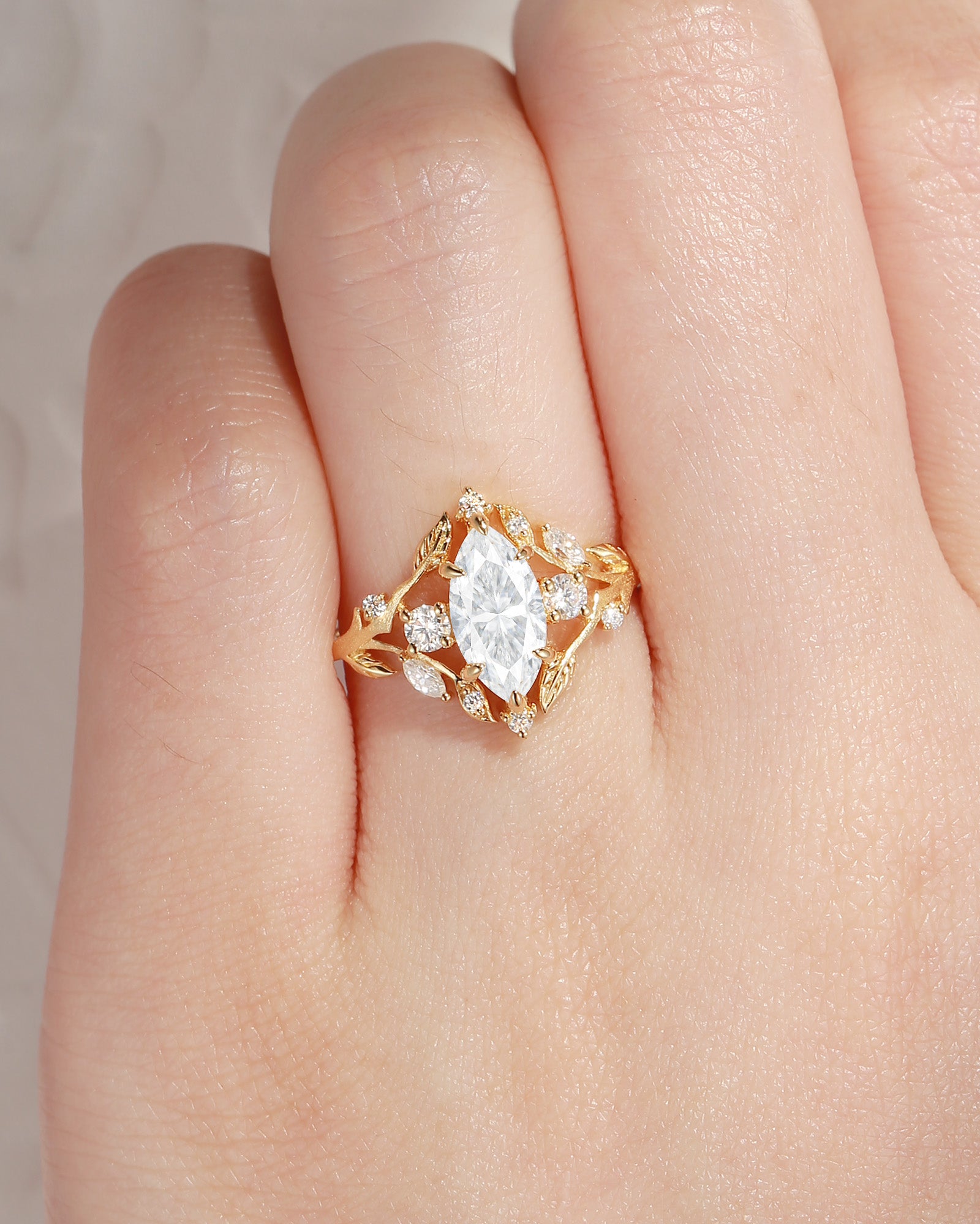 Nature Inspired Marquise Moissanite Garden Engagement Ring