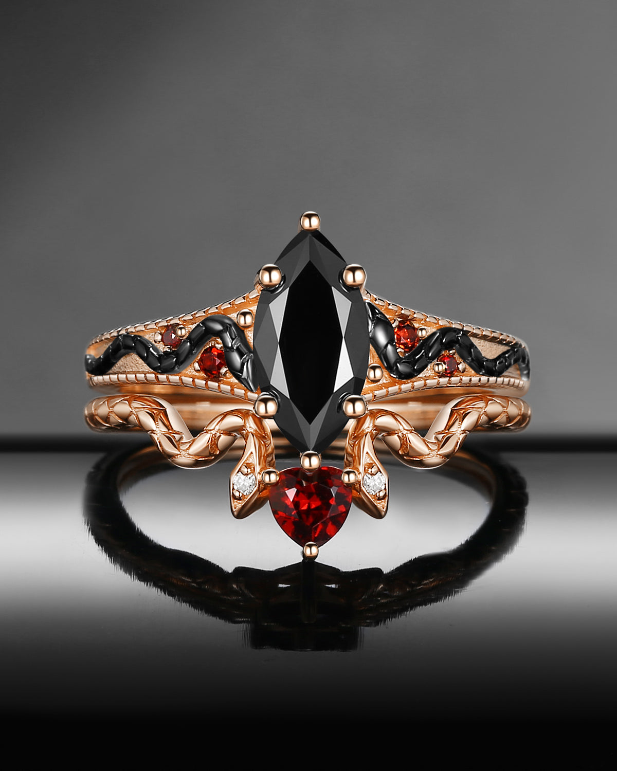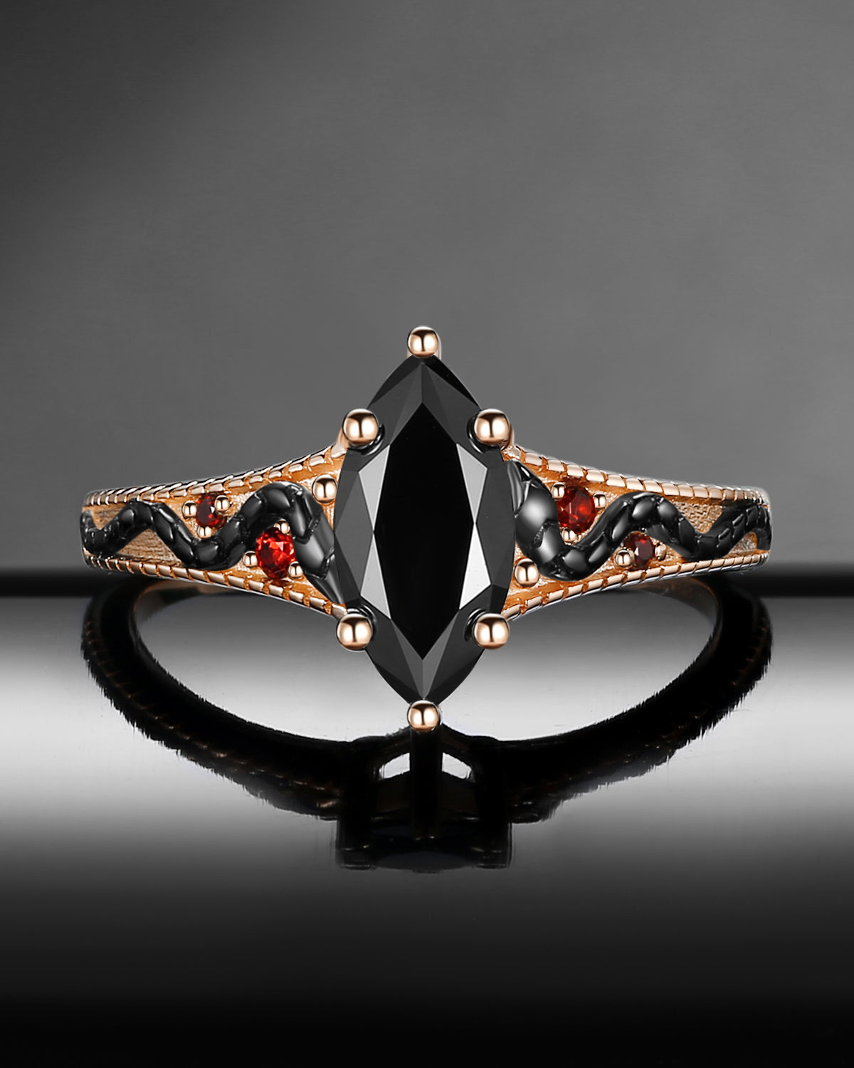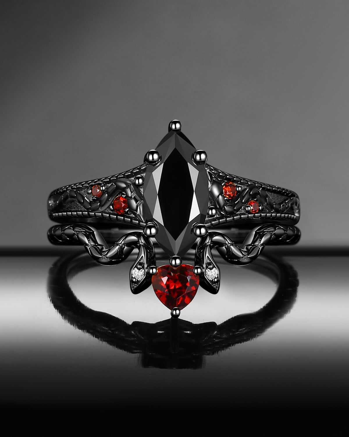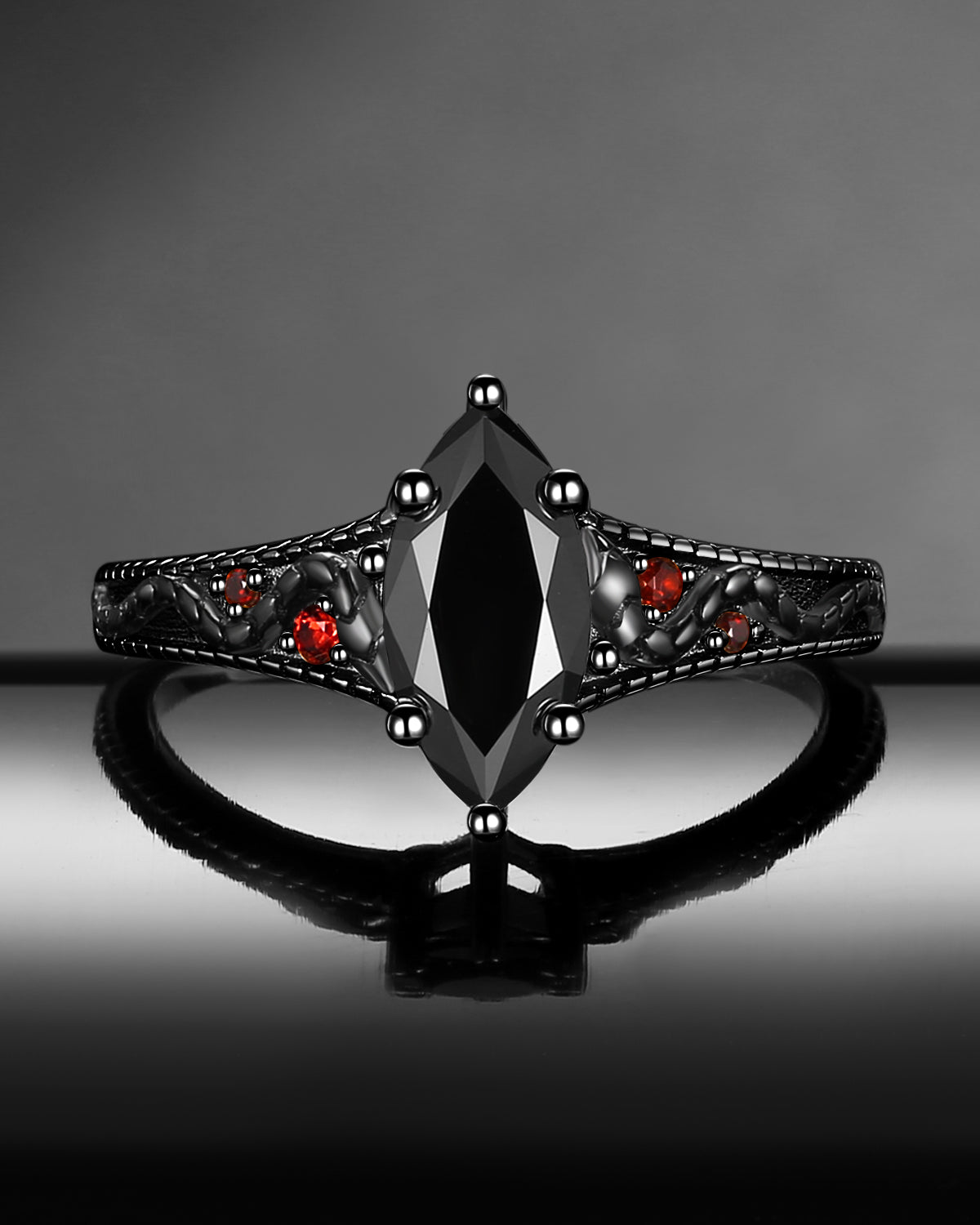 Marquise Cut Black Moissanite Gothic Bat Inspired Engagement Ring