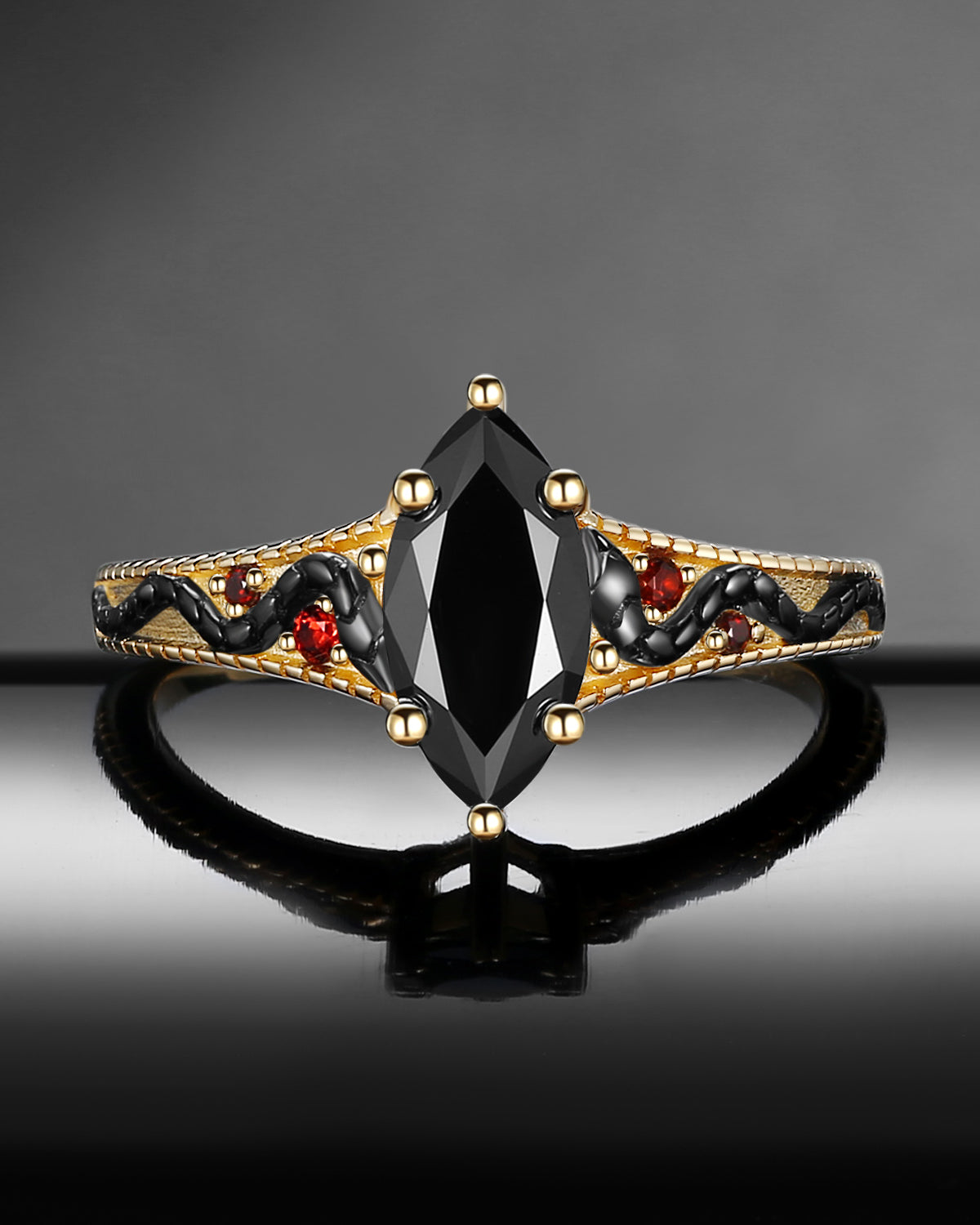 Gothic Twist Coffin Cut Garnet Two-Tone Gold Engagement Ring - Serpent's Embrace