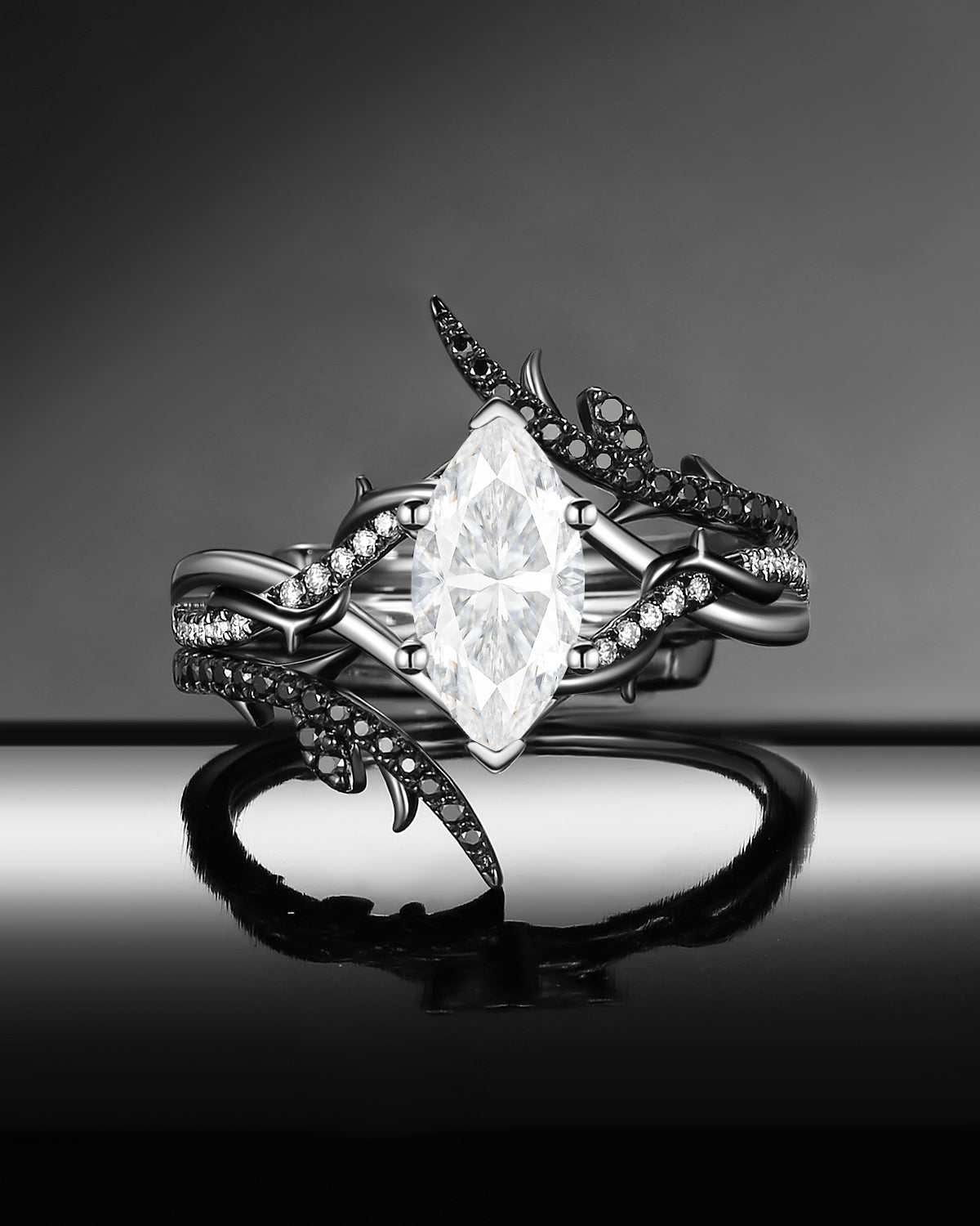 Nature Inspired Marquise Moissanite 'Thorns & Roses' Two-Toned Engagement Ring