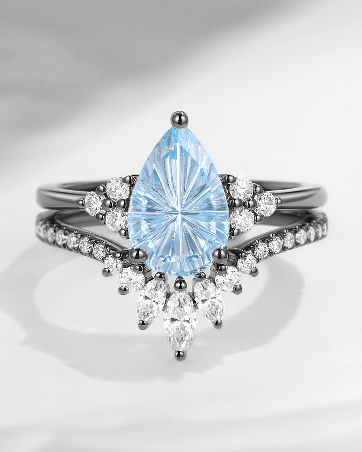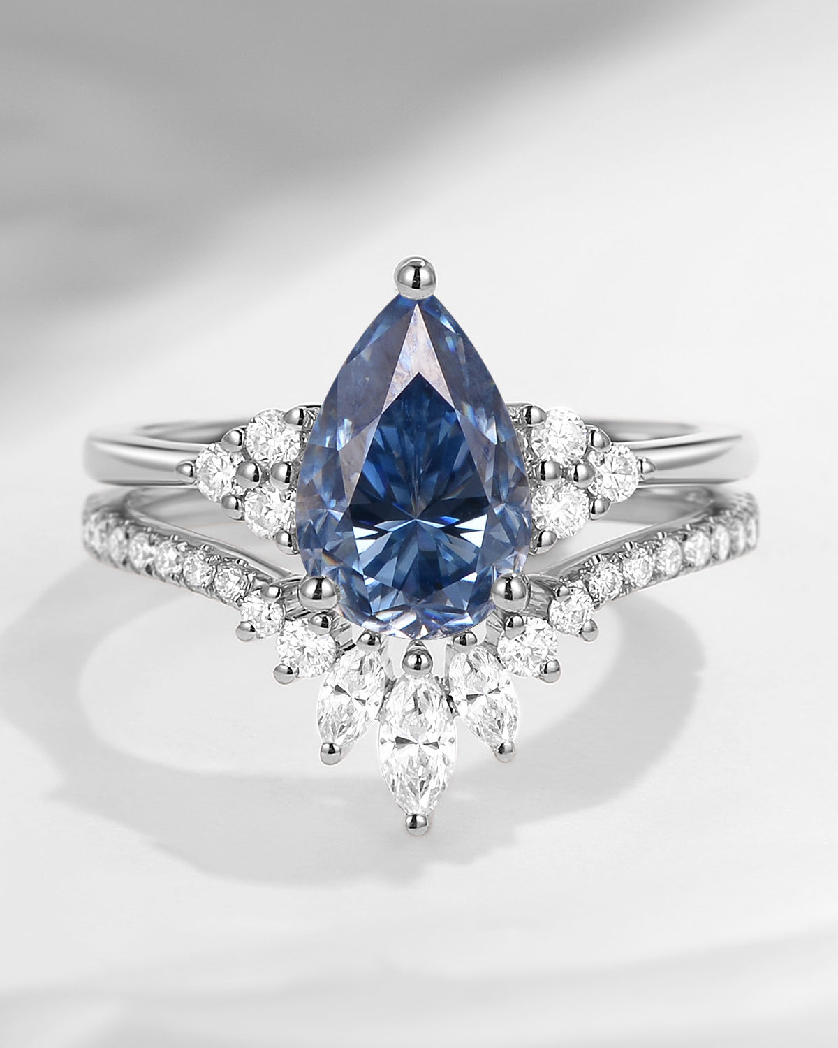 Pear Shaped Blue Moissanite Engagement Ring Set 2pcs - Evelyn
