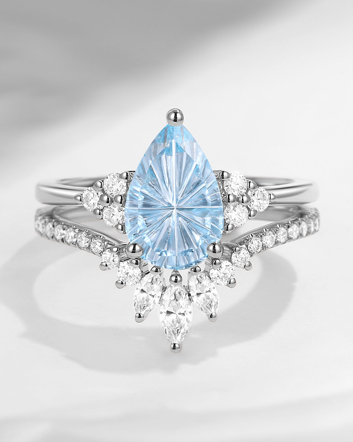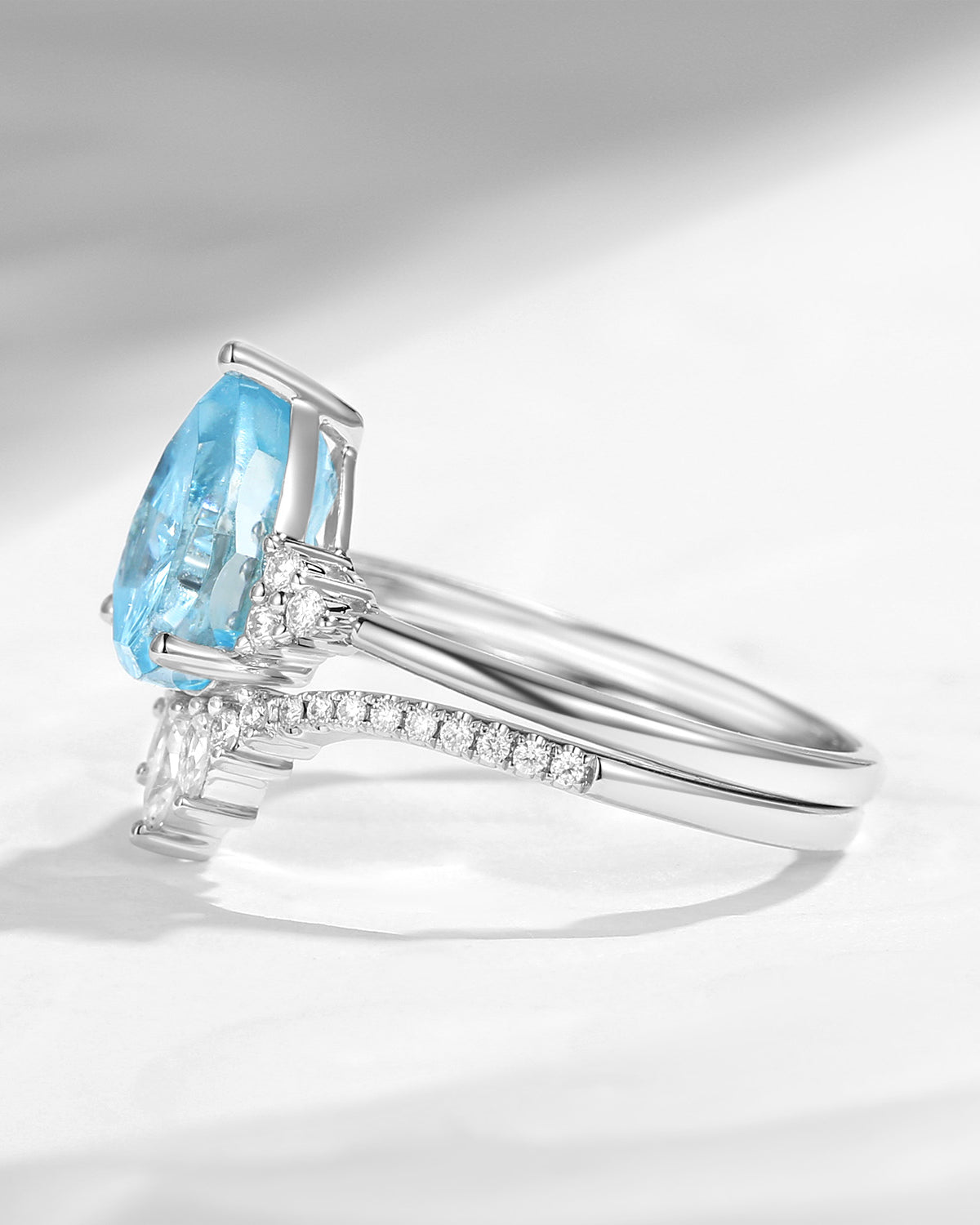 Crescent Moon | Pear Cut Natural Aquamarine Engagement Ring Sets 2pcs - Luna