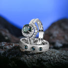 Crescent Moon Round Shaped Natural Teal Sapphire Couple Rings - Full Moon