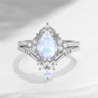 Unique 1.5ct Pear Shaped Moonstone Engagement Ring Set 2pcs