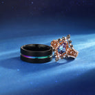 Crescent Moon | Coffin Faceted Lab Alexandrite Rainbow Electroplated Couple Bridal Ring Set