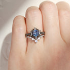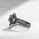 Crescent Moon | Round Cut Lab Alexandrite 'Black Statement' Ring Set 2pcs