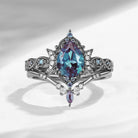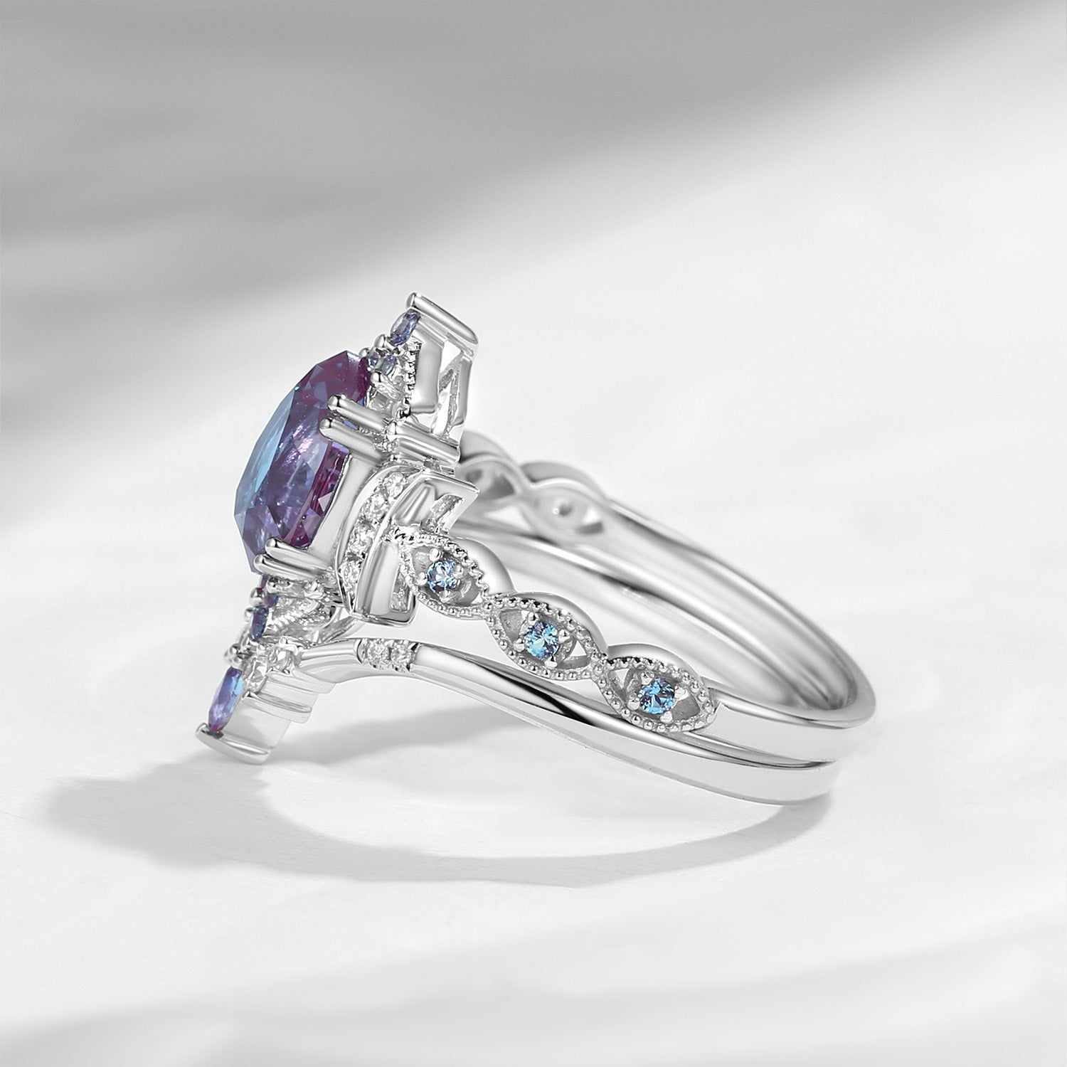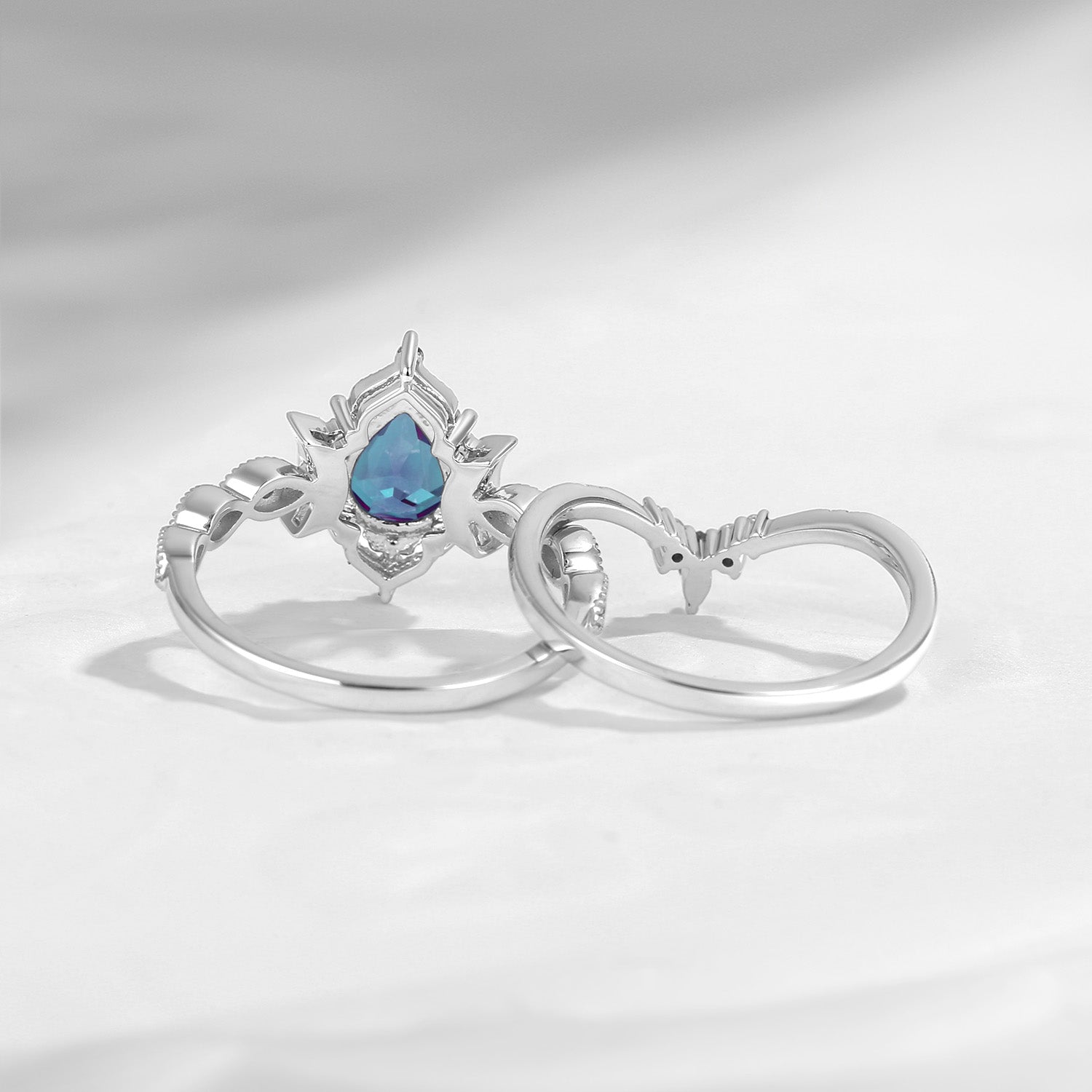 Crescent Moon | Unique Lab Alexandrite Engagement Ring Set 2pcs - Luna
