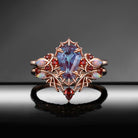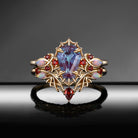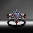 Gothic Coffin Shaped Lab Alexandrite Spider Inspired Engagement Ring Set 2pcs
