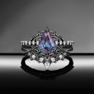 Gothic Inspired Coffin Lab Alexandrite Spider Web Black Gold Engagement Ring Set 2pcs