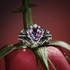 Select moreHalo Heart Shaped Lab Alexandrite Black Gold Flower Engagement Ring 2pcs Set