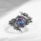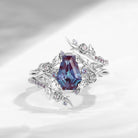 Nature Inspired Twist Coffin Cut Lab Alexandrite Engagement Ring Set 2pcs
