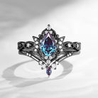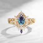 Crescent Moon | Blue Moonlight 18K Unique Alexandrite Engagement Ring Set 2pcs - Luna