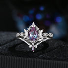 18K Unique Alexandrite Engagement Ring Set Bridal Set 2pcs White Gold Ring Pear Shaped Engagement Ring