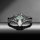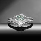 Nature Inspired Bark Textured 'Tree of Life' Half Moon Moss Agate & Coffin Moissanite Mushroom Engagement Ring Set 2pcs Garden of Eden