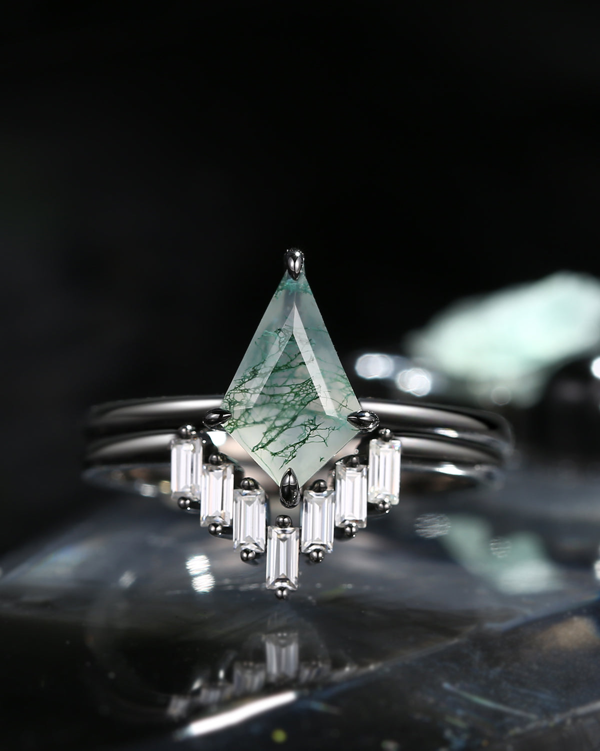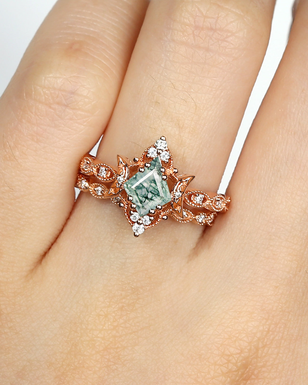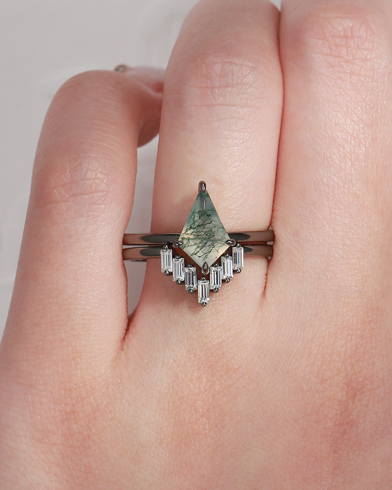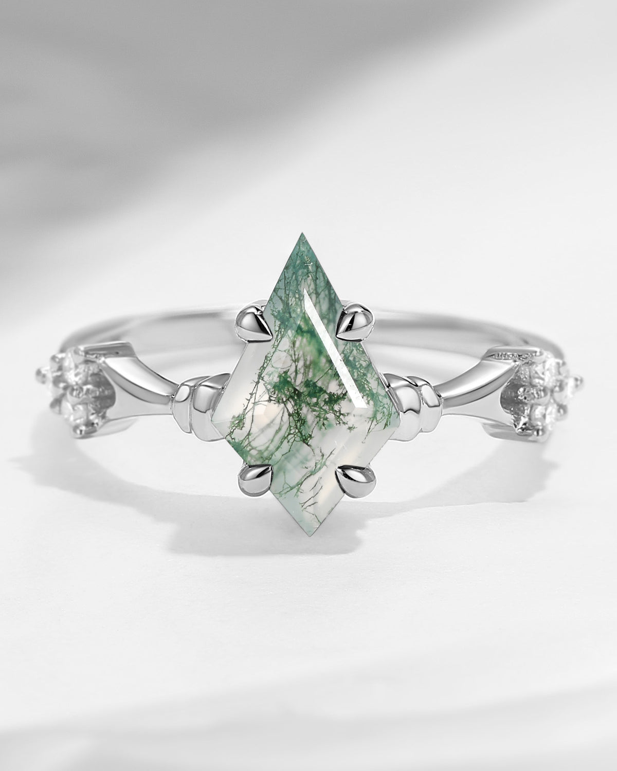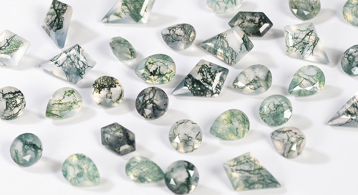 Moss agate is a unique and captivating gemstone that is a variety of agate. It is characterized by its green, moss-like or dendritic inclusions that resemble miniature landscapes, formed by embedded oxides. Typically ranging from translucent to opaque, moss agate can have a background color of white, blue, or brown. Its natural and earthy tones are often believed to possess healing and nurturing energies, making it popular for decorative and therapeutic purposes. In jewelry design, moss agate is valued for its distinctive patterns and natural appearance.