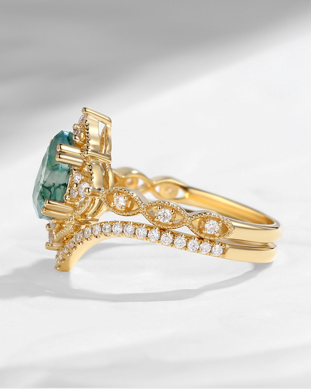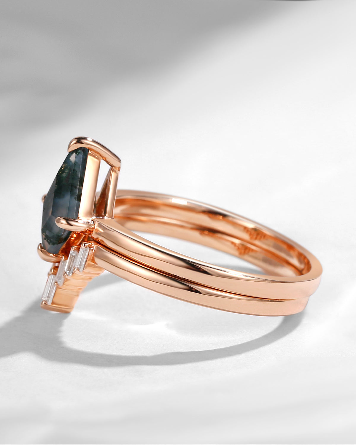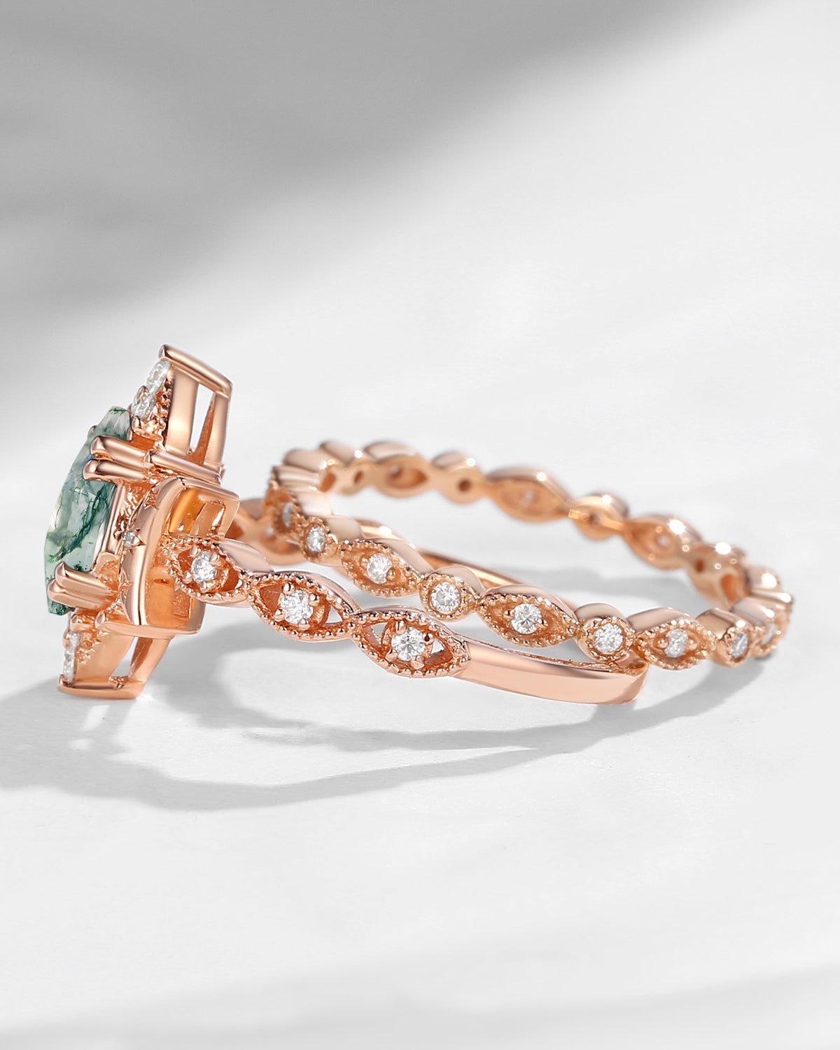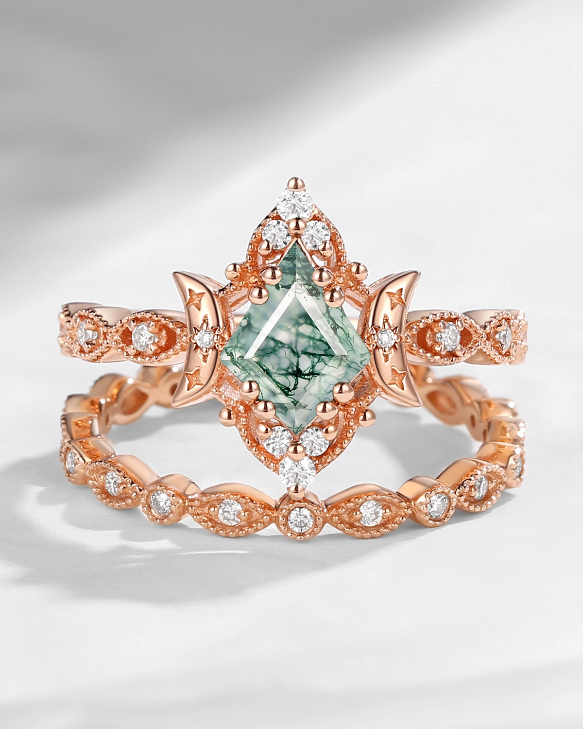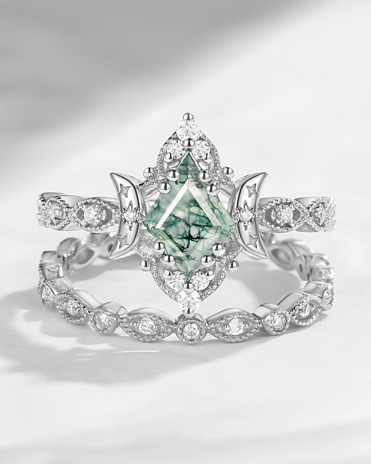 Moss agate is a unique and captivating gemstone that is a variety of agate. It is characterized by its green, moss-like or dendritic inclusions that resemble miniature landscapes, formed by embedded oxides. Typically ranging from translucent to opaque, moss agate can have a background color of white, blue, or brown. Its natural and earthy tones are often believed to possess healing and nurturing energies, making it popular for decorative and therapeutic purposes. In jewelry design, moss agate is valued for its distinctive patterns and natural appearance.
