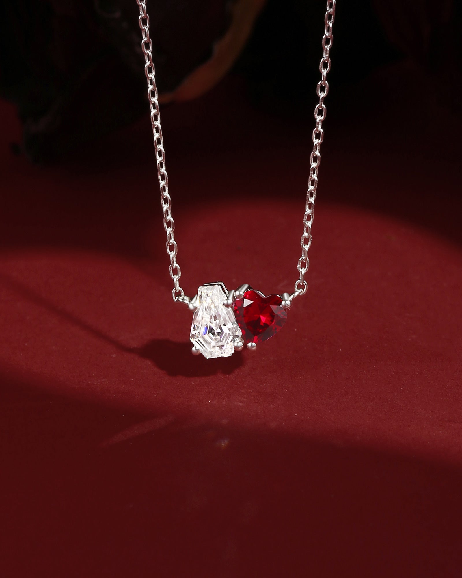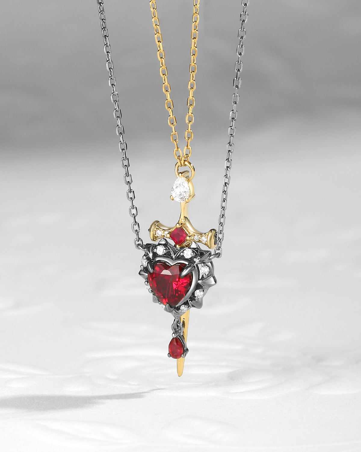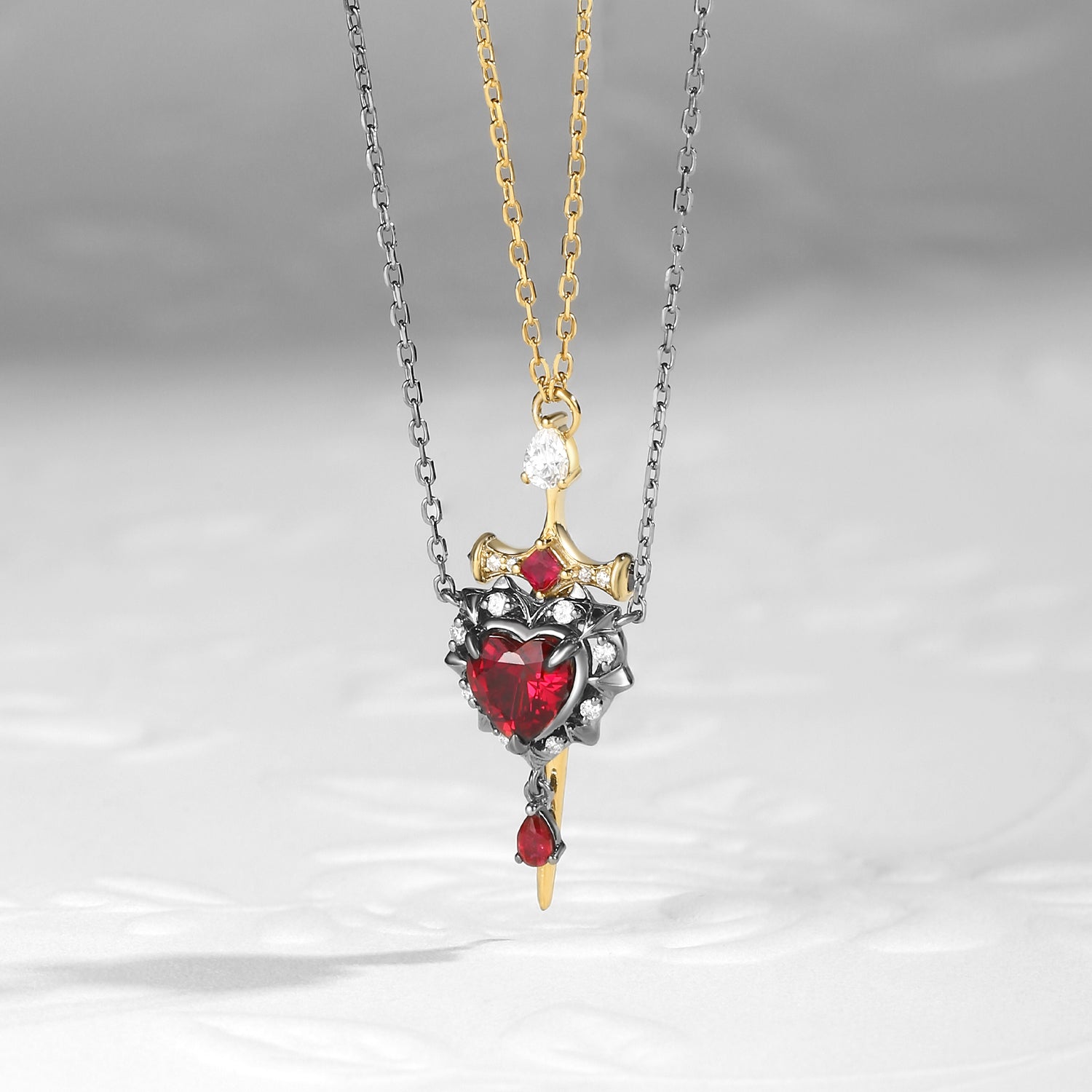 Lab Ruby Heart Cut Couple Necklaces Set 2pcs - Cupid's Arrow