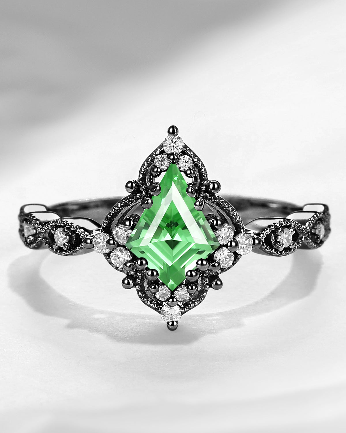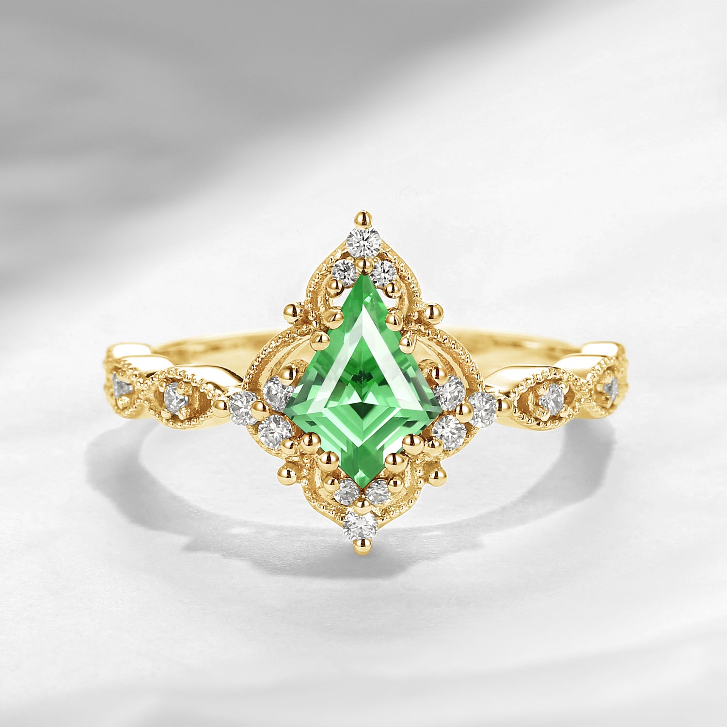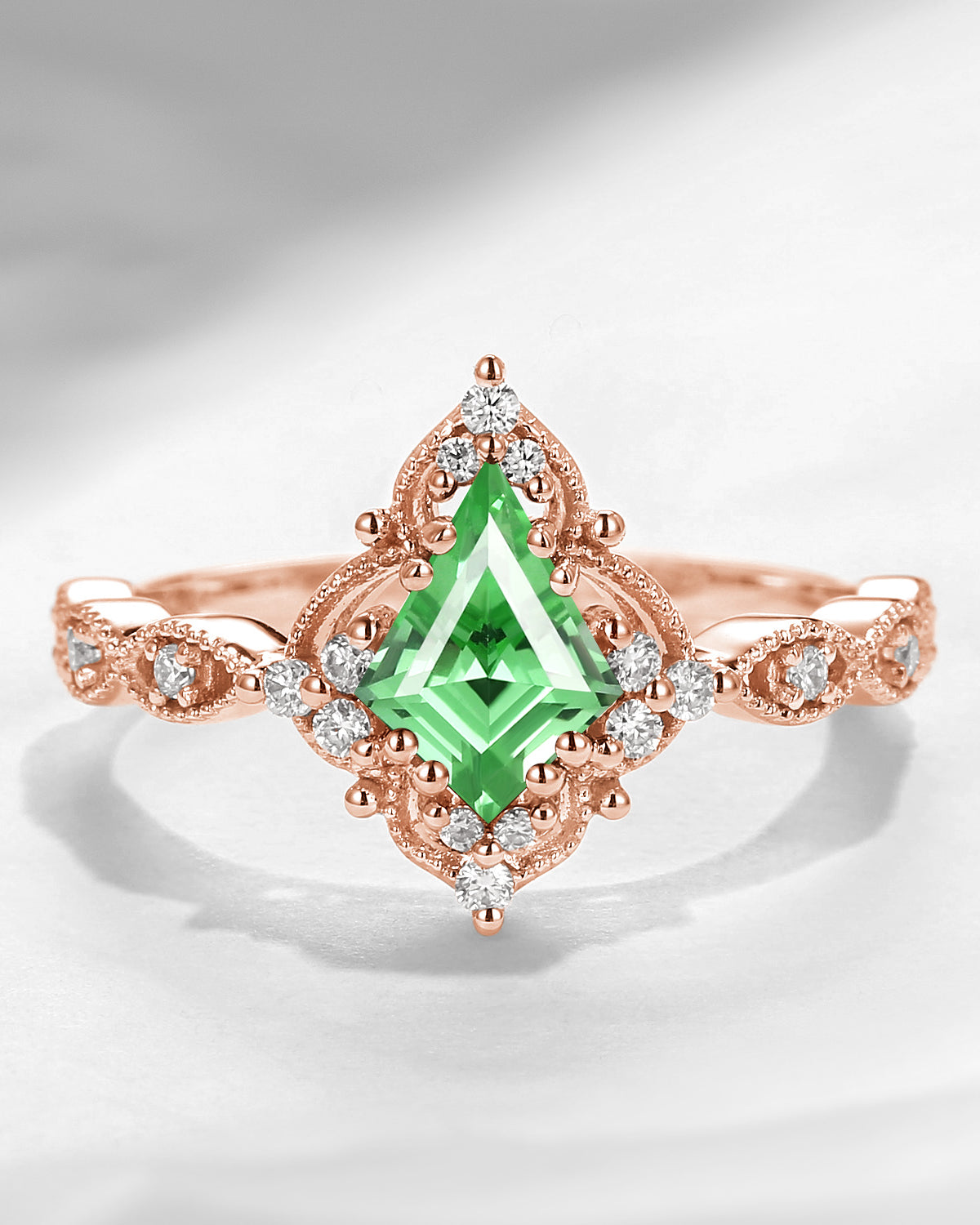 Vintage Inspired Milgrain Kite Cut Lab Tsavorite Antique Engagement Ring