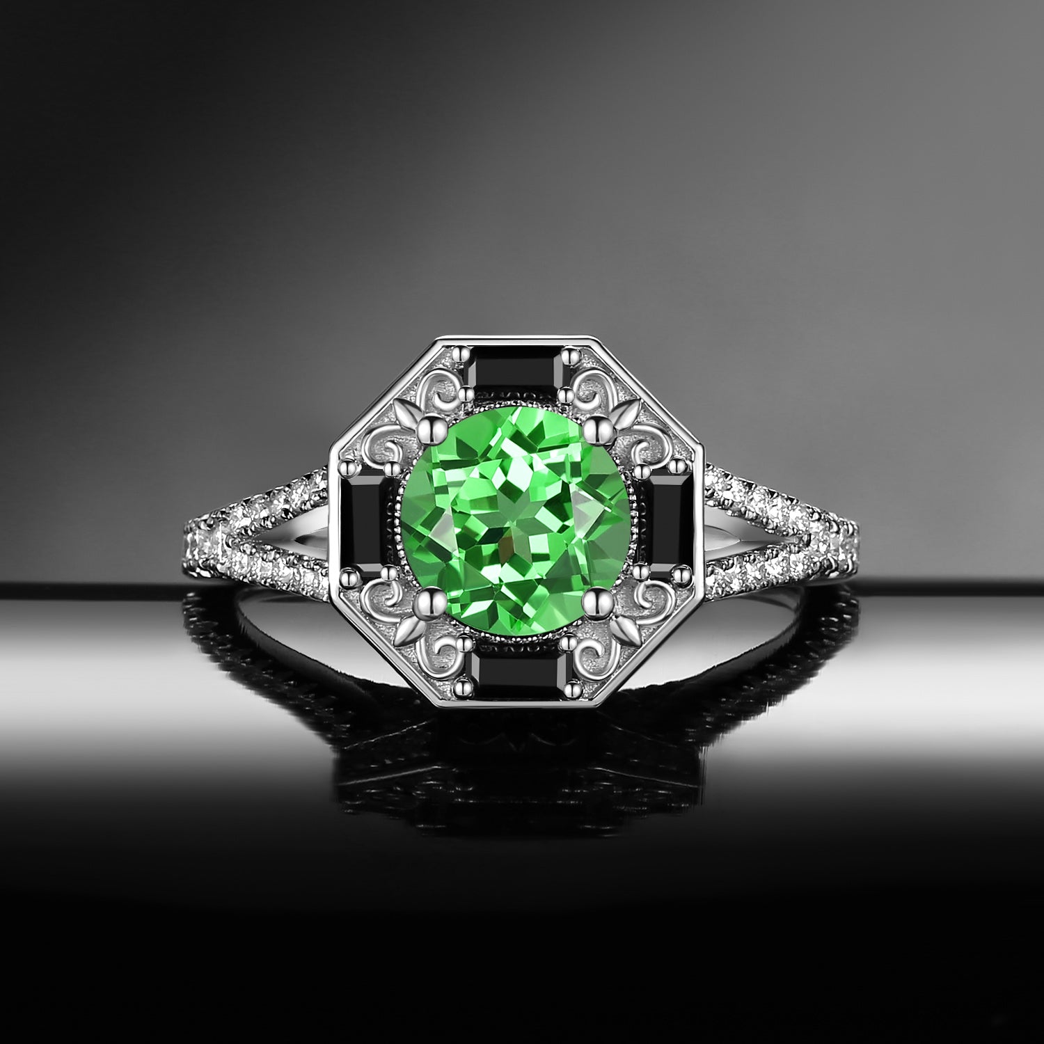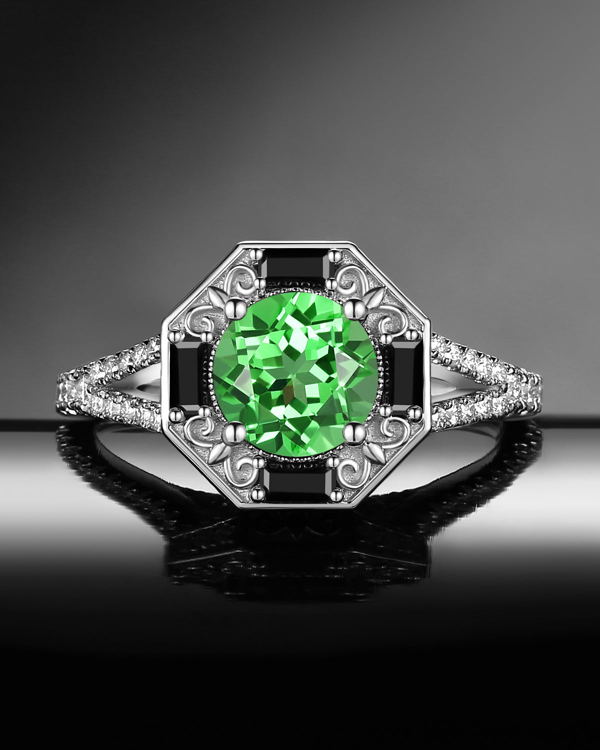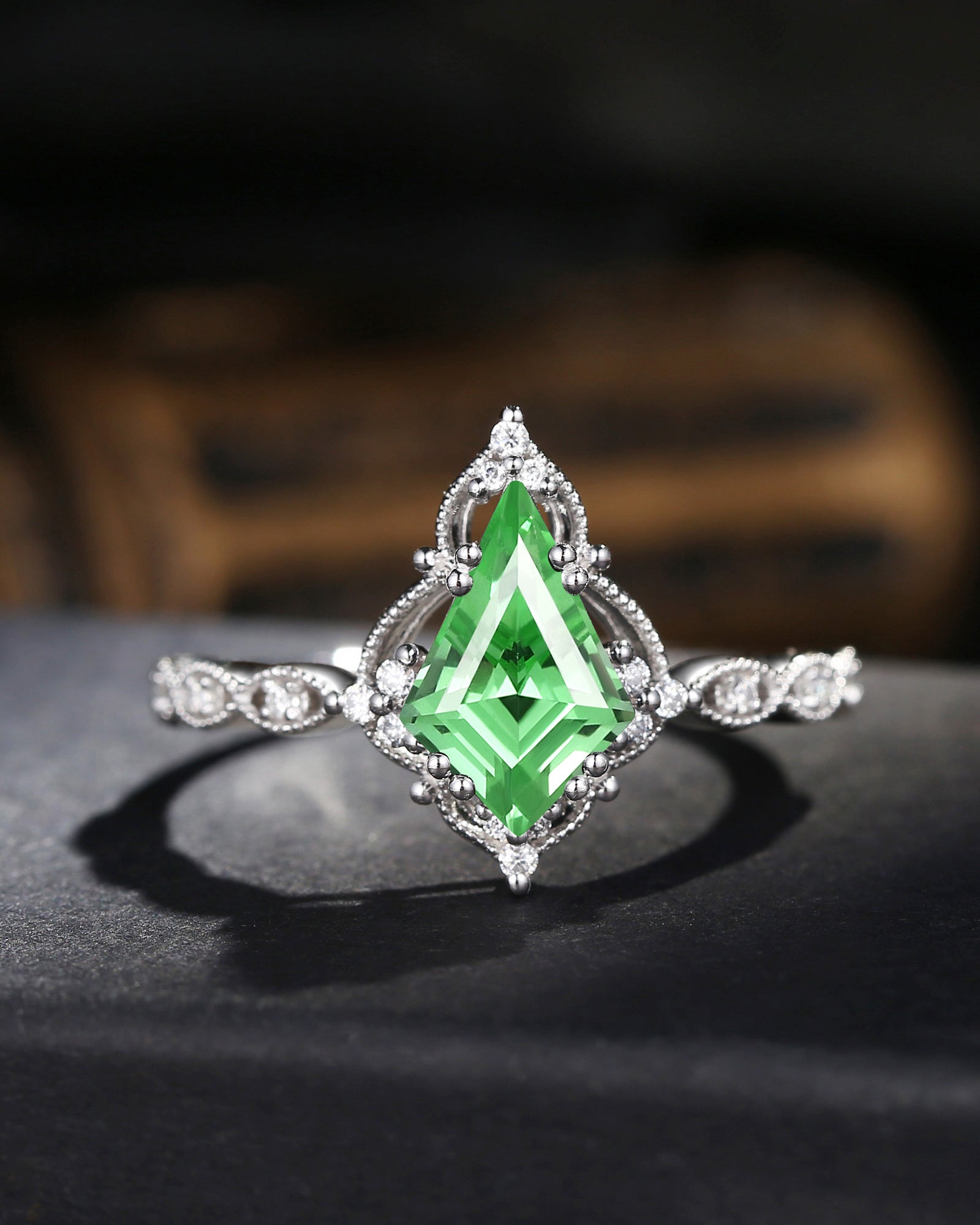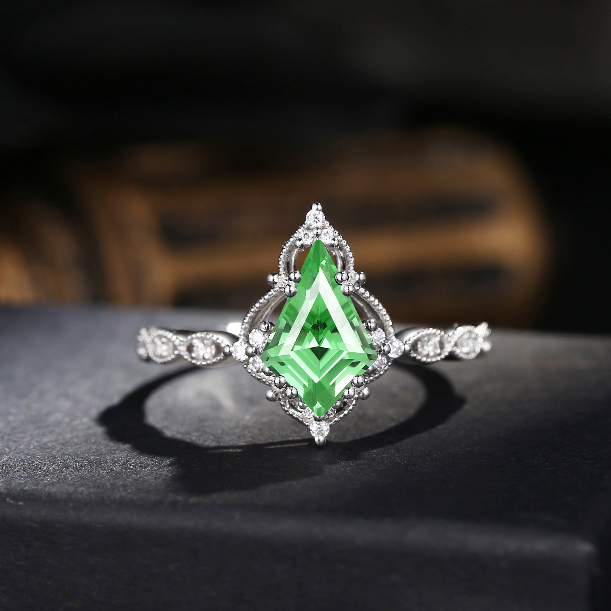 Vintage Inspired Milgrain Kite Cut Lab Tsavorite Antique Engagement Ring