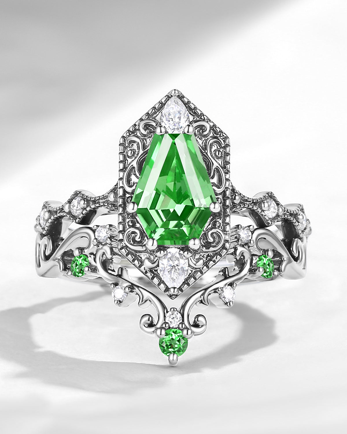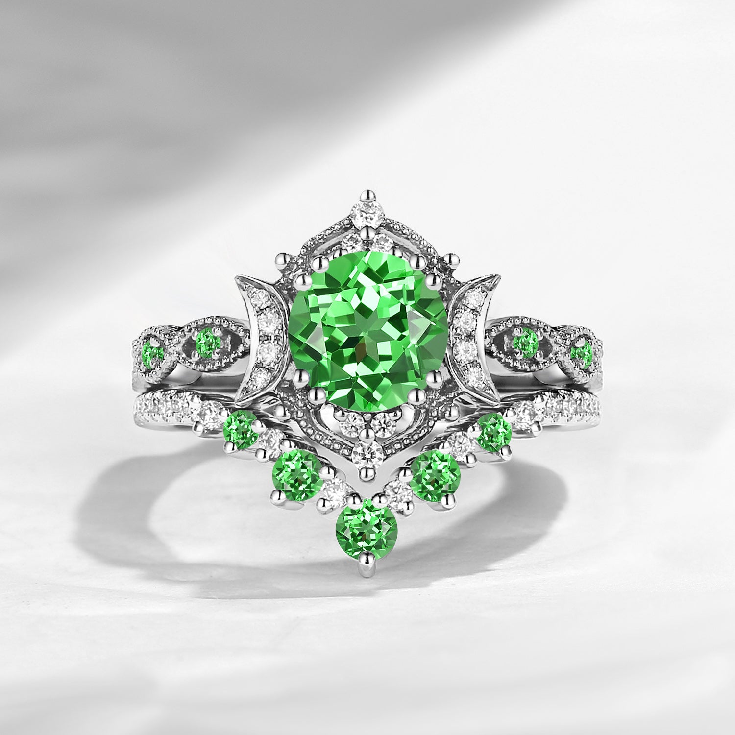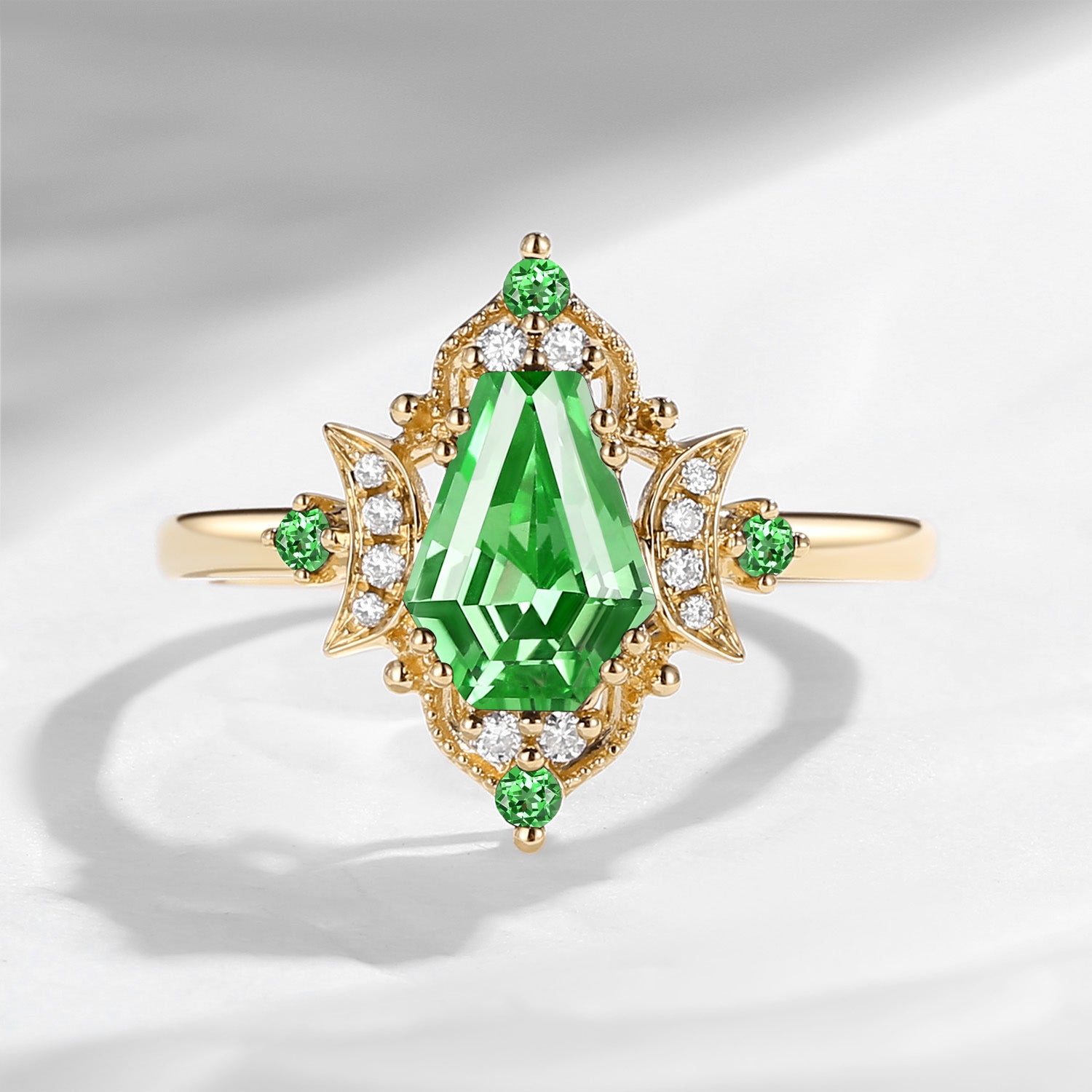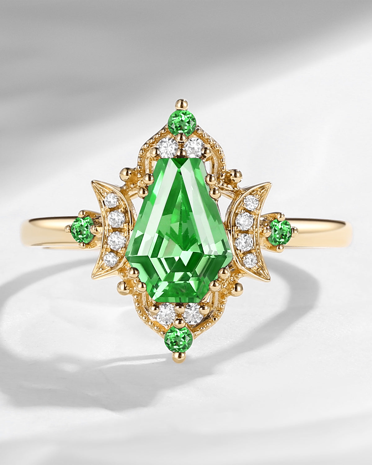 Crescent Moon | Unique Kite Cut Lab Tsavorite Engagement Ring Set 2pcs - Luna