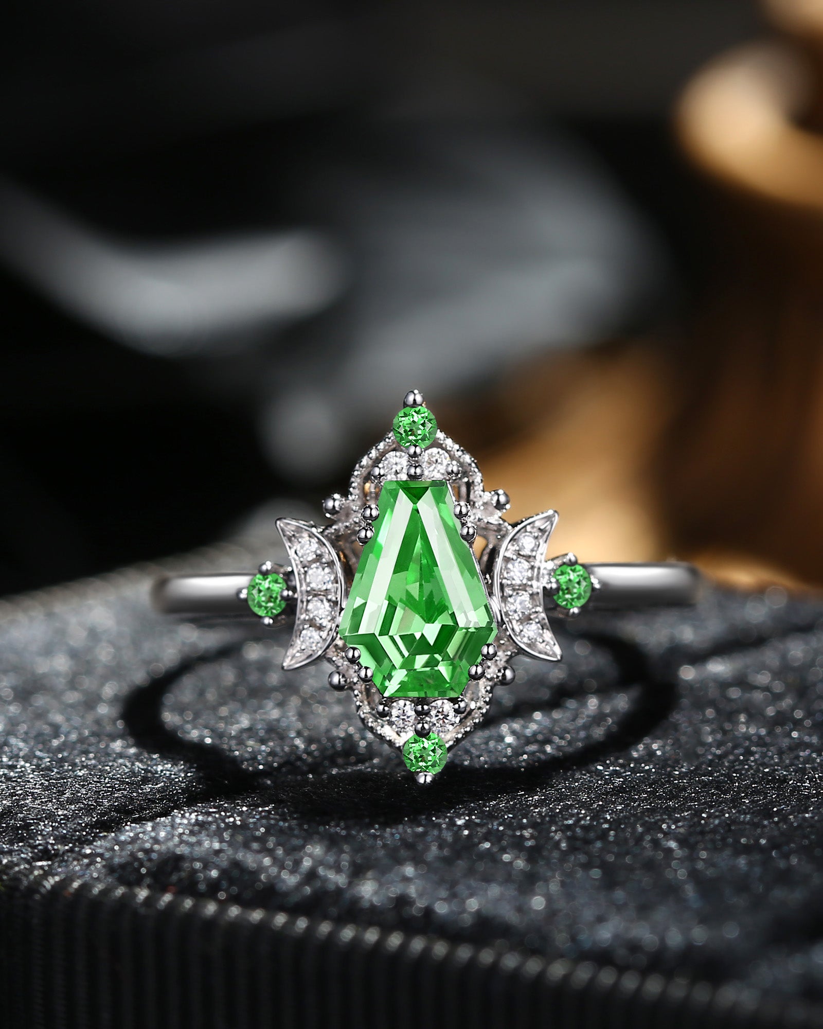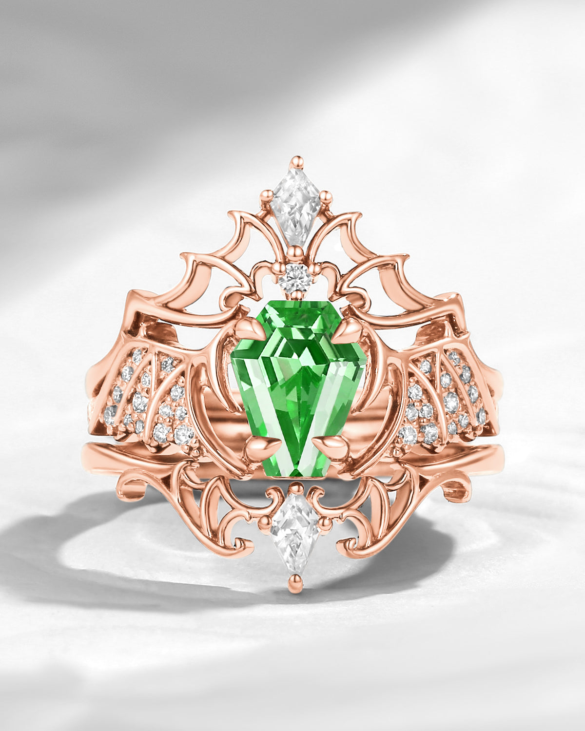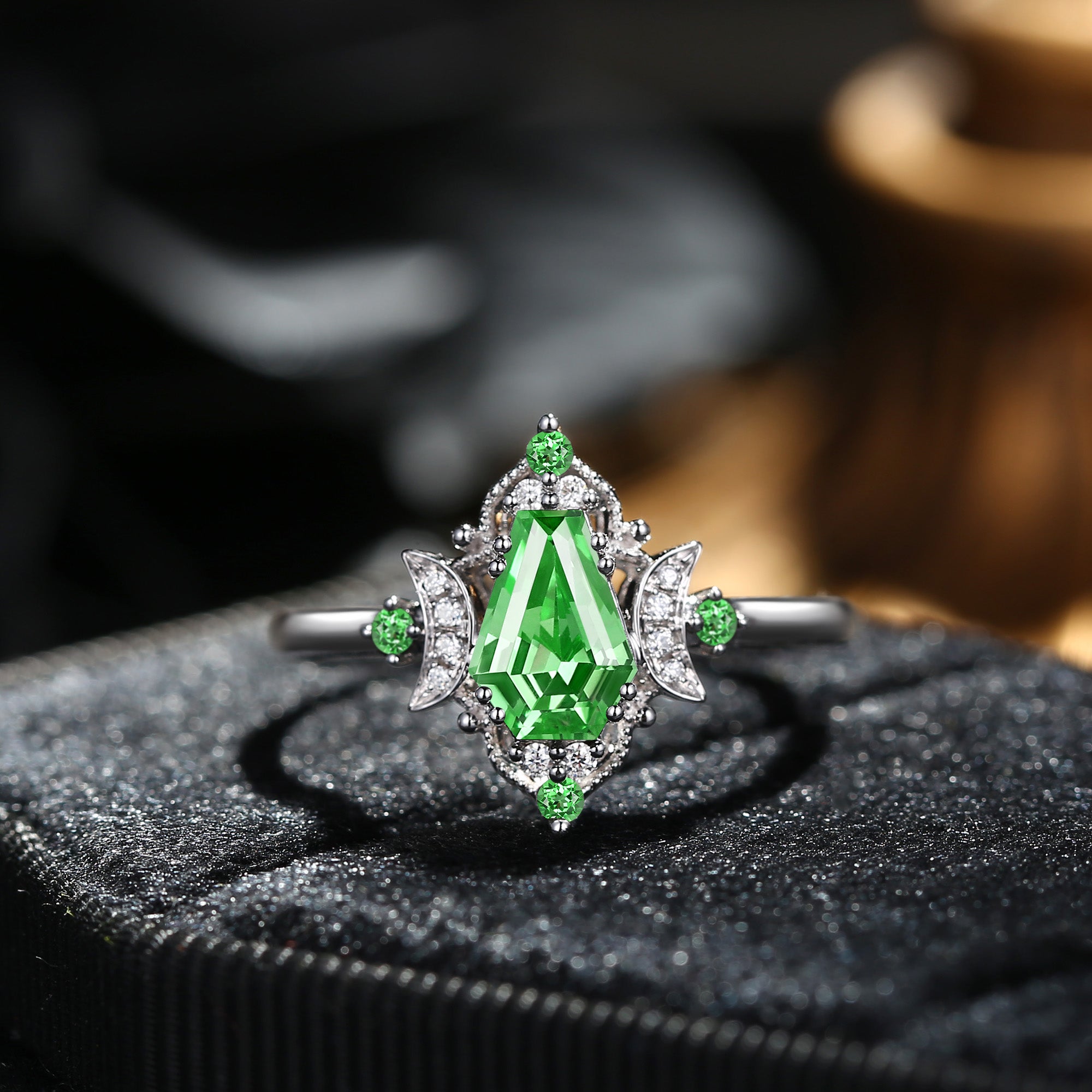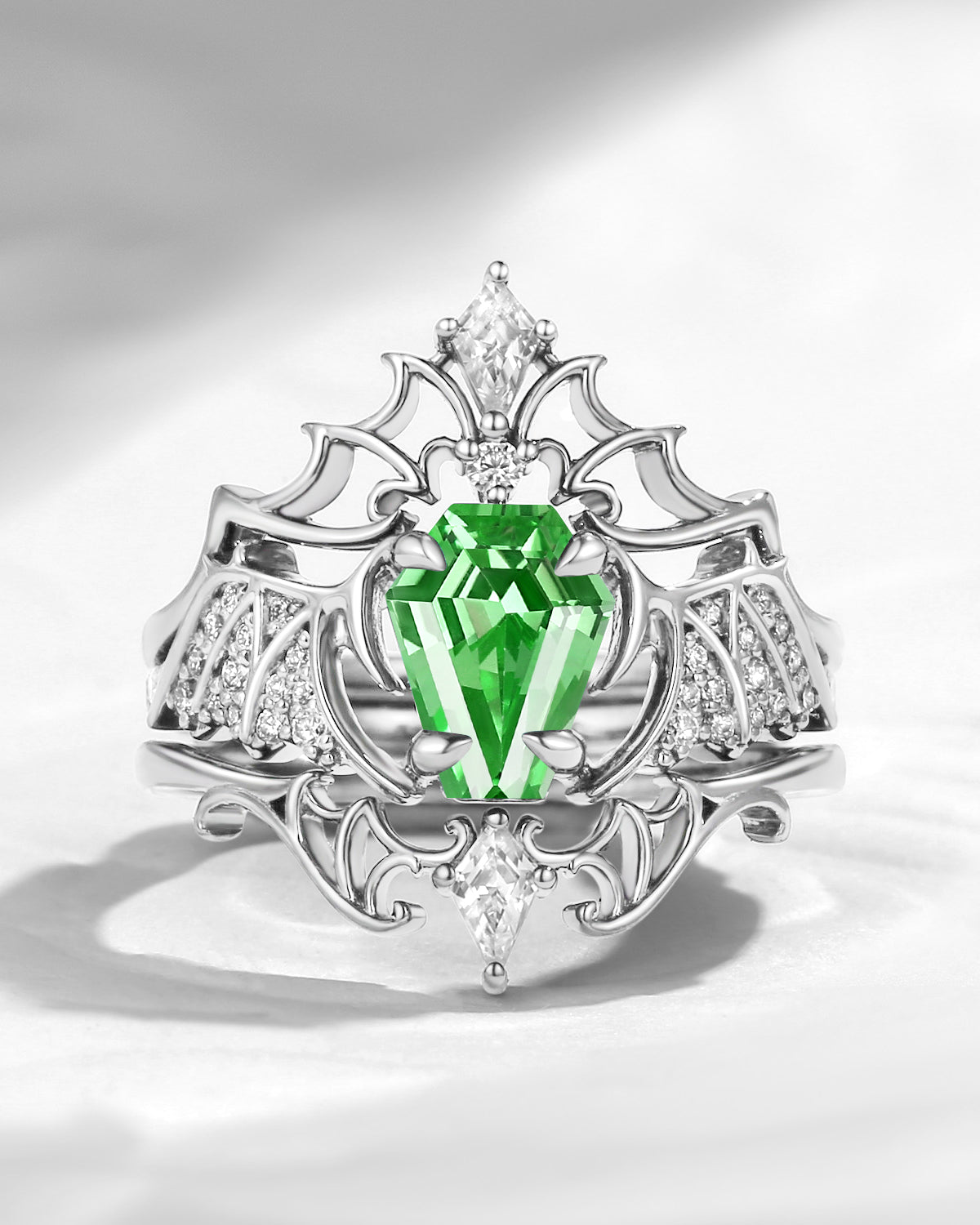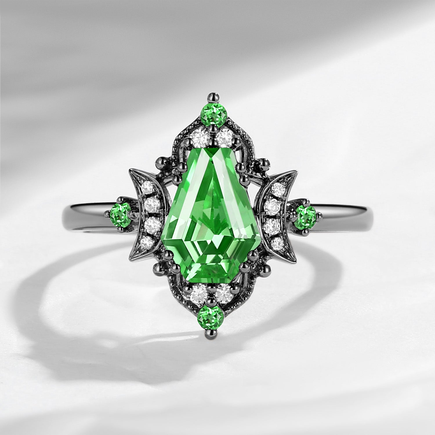 Crescent Moon | Unique Kite Cut Lab Tsavorite Engagement Ring Set 2pcs - Luna