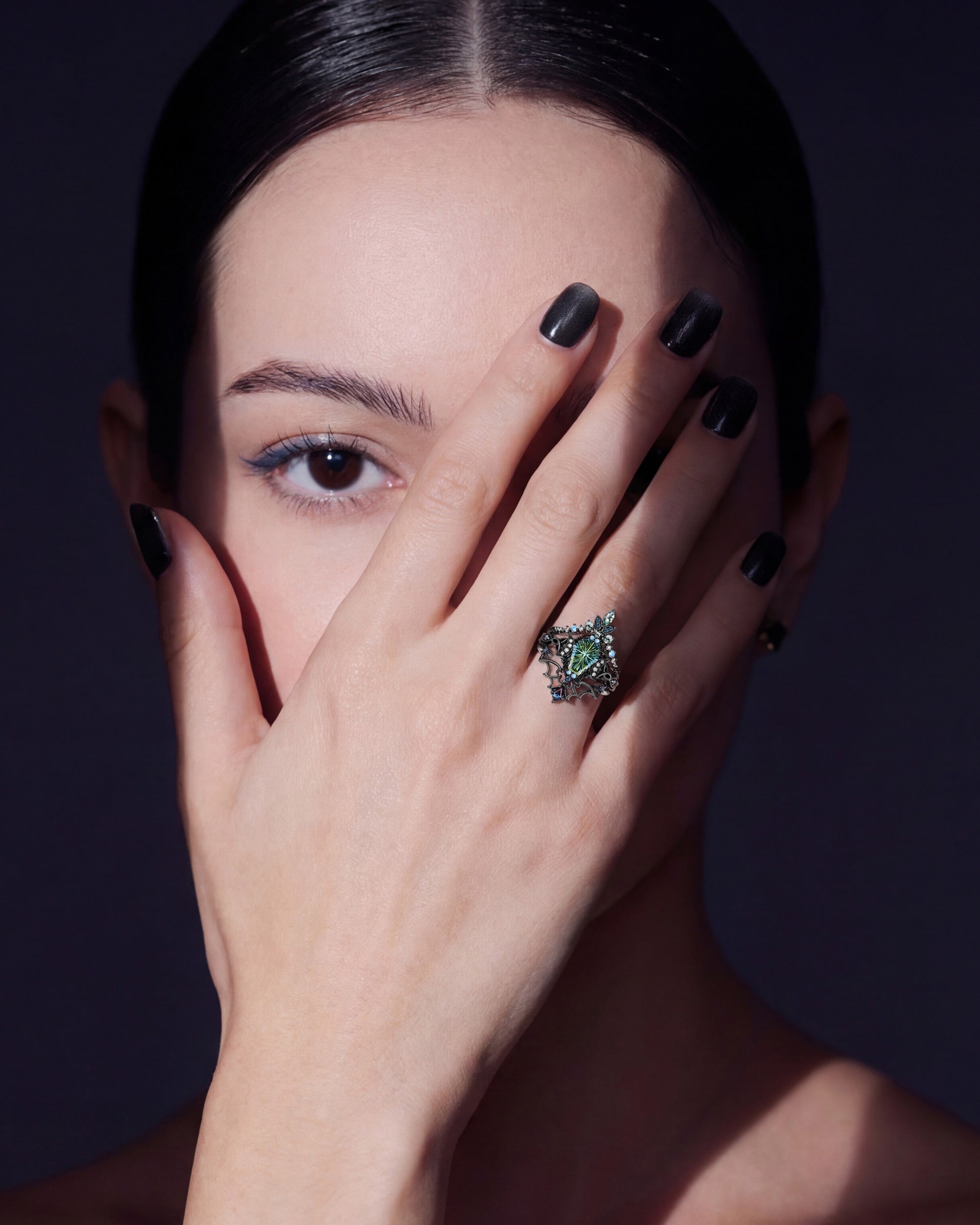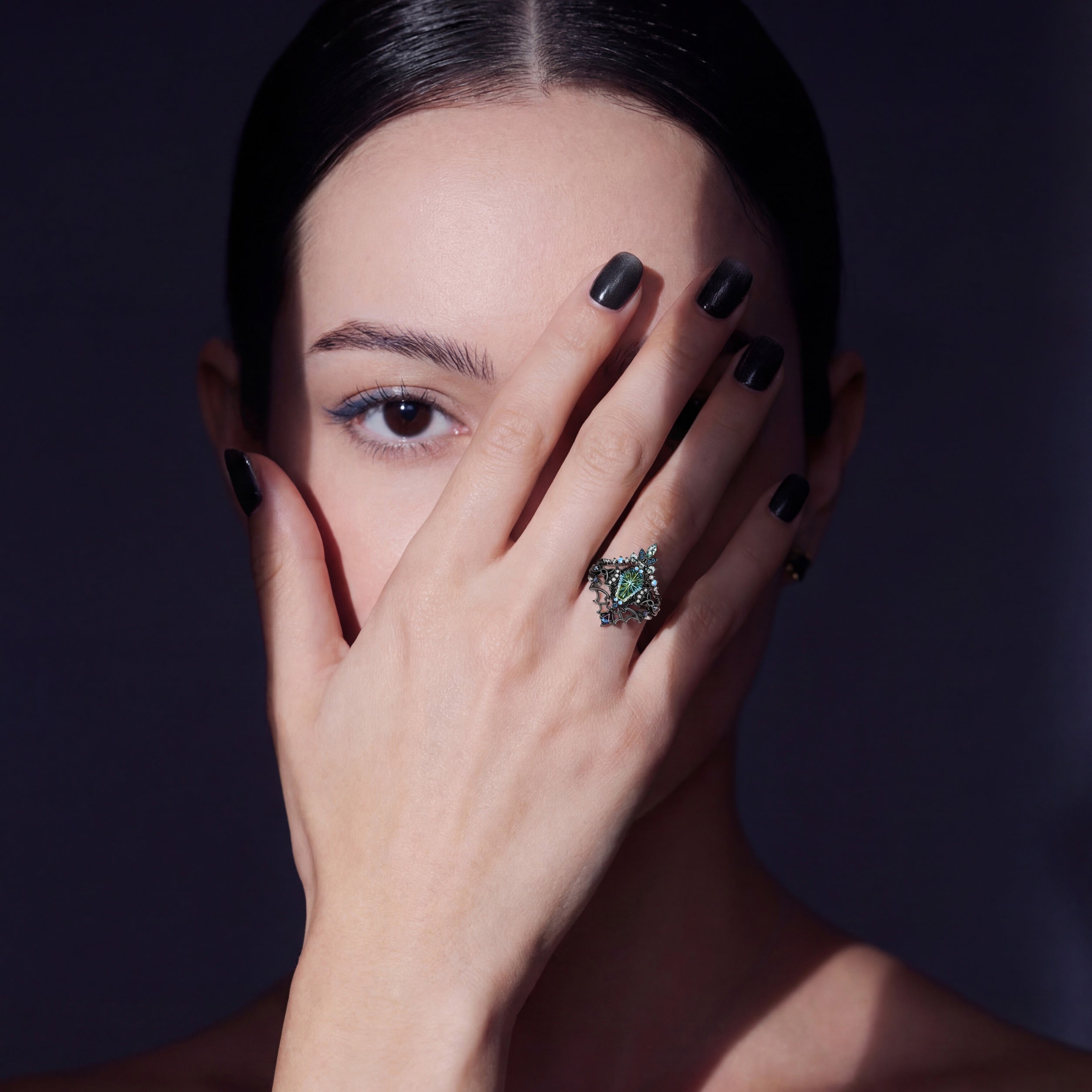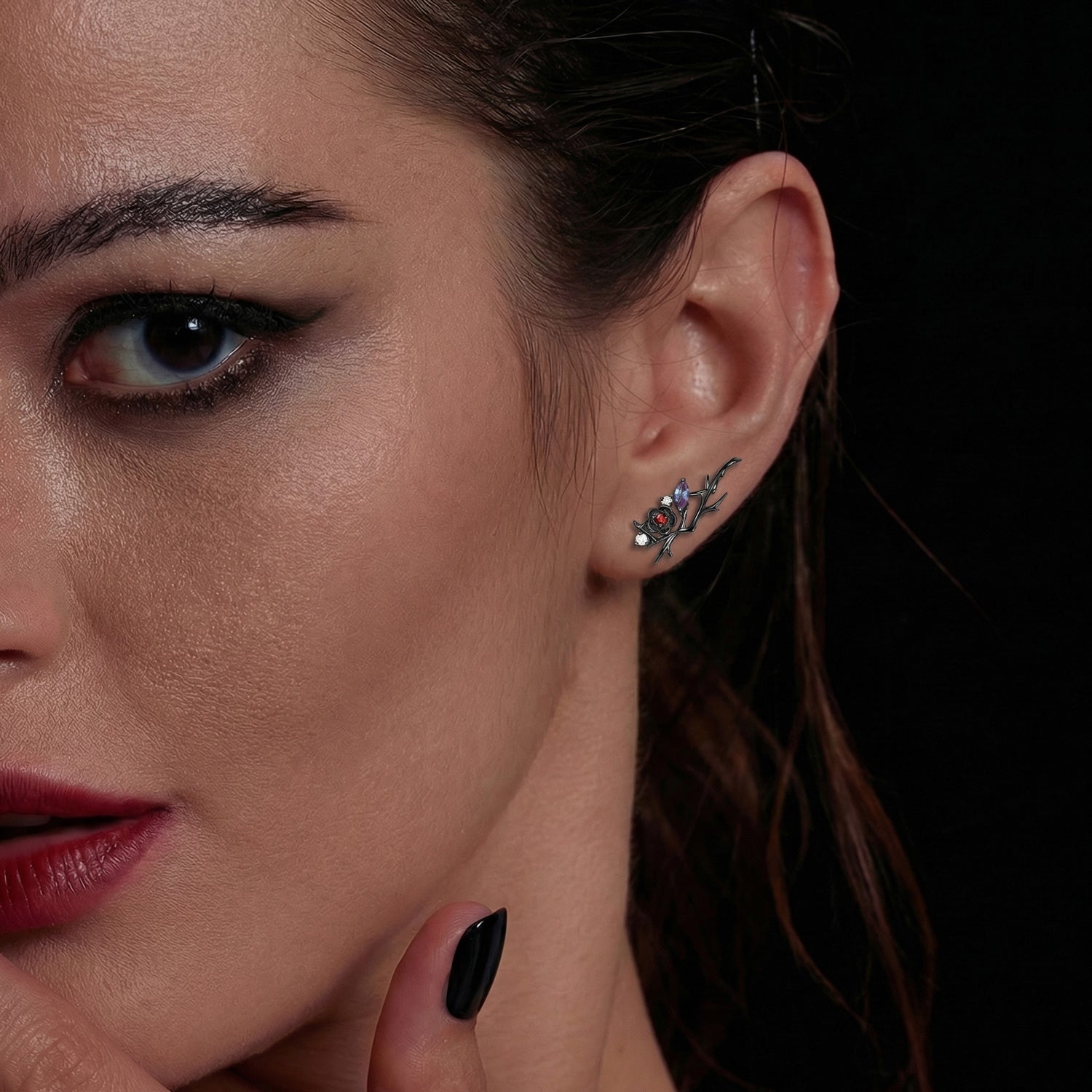 Gothic Crow Inspired Garnet Halloween Black Gold Engagement Ring