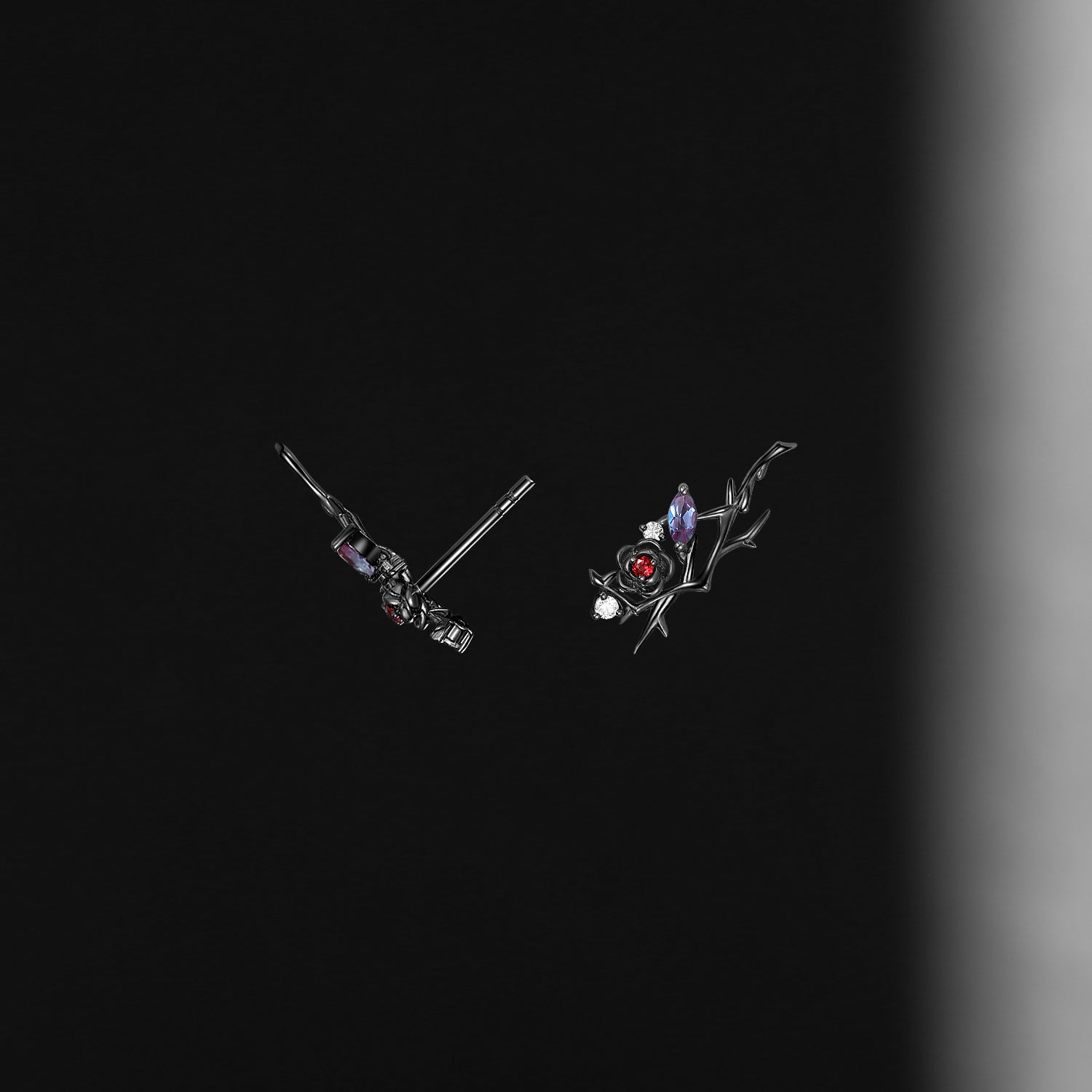 Gothic Style Coffin Moissanite Garden Of Eden Thorns & Roses Black Gold Ring Set 2pcs