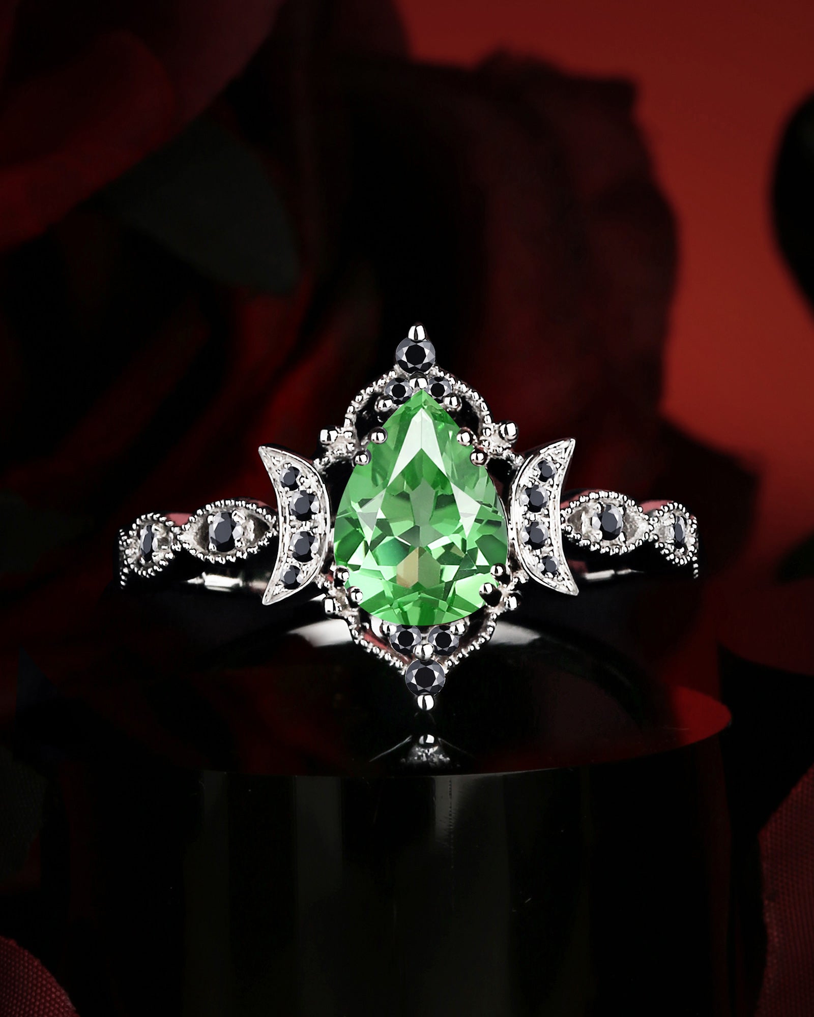 Crescent Moon | Unique Lab Tsavorite Engagement Ring In Pear Shape - Eclipse