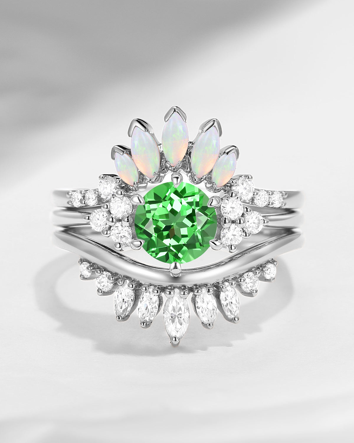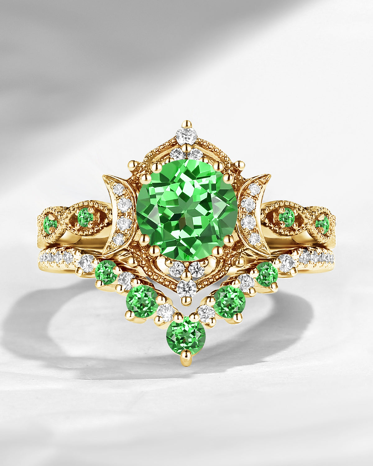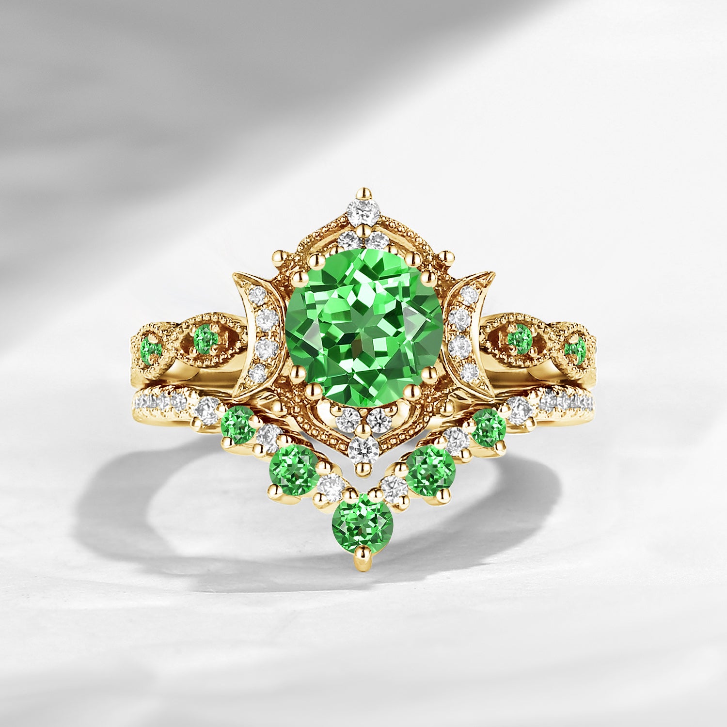 Bette‘s Eyes | Lab Tsavorite Engagement Ring Set 3pcs