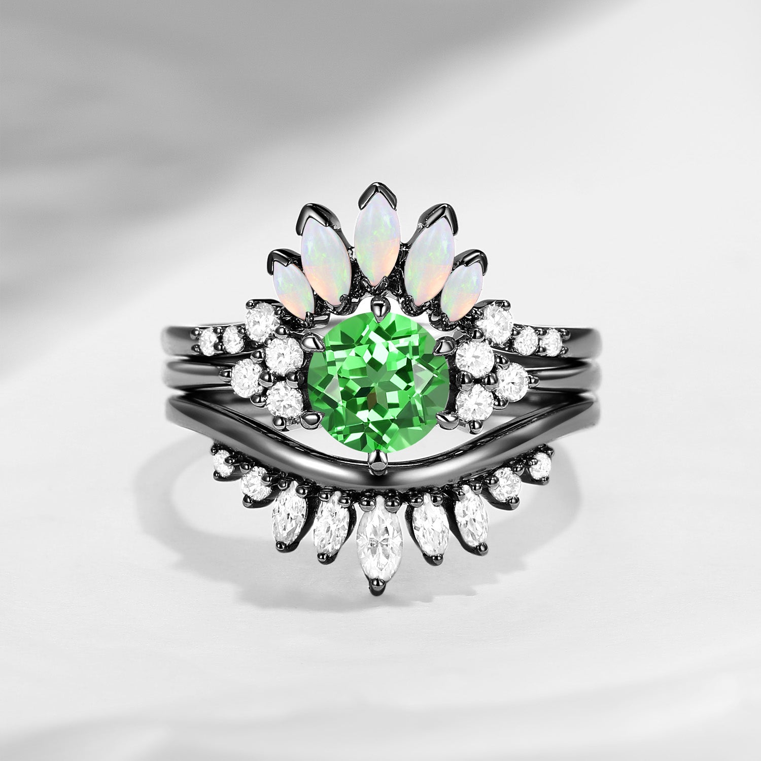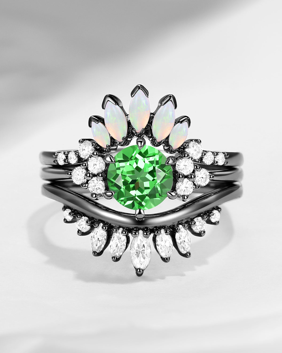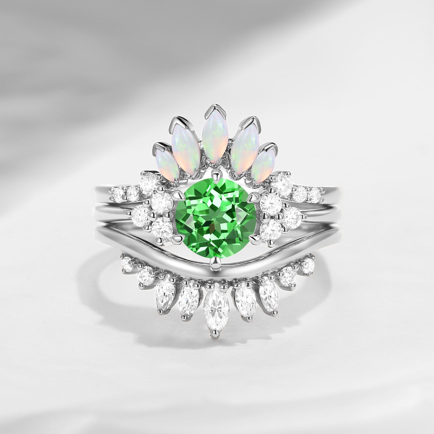 Bette‘s Eyes | Lab Tsavorite Engagement Ring Set 3pcs