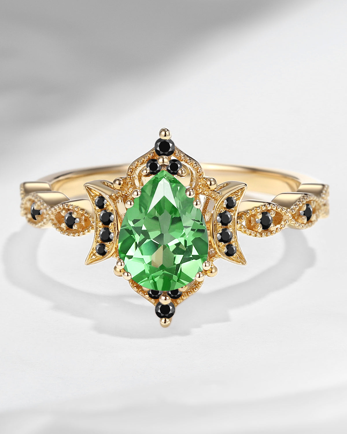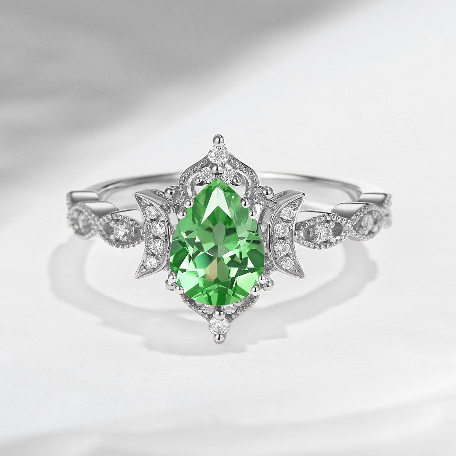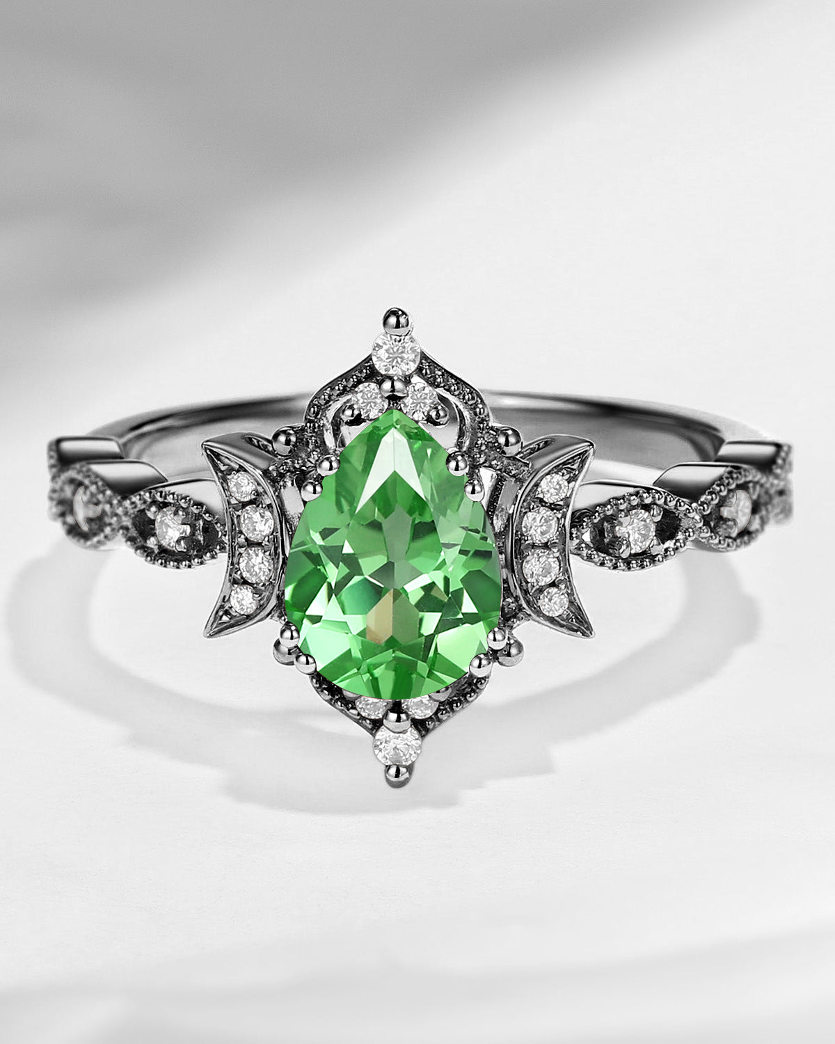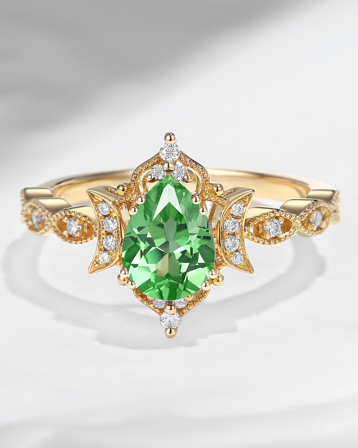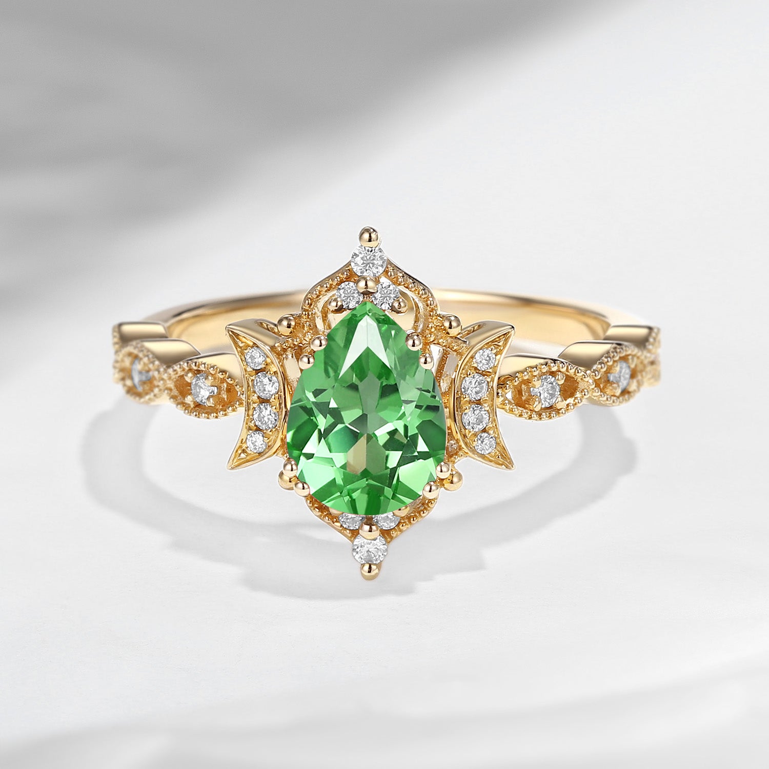 Crescent Moon | Vintage Inspired Pear Cut Lab Tsavorite Engagement Ring