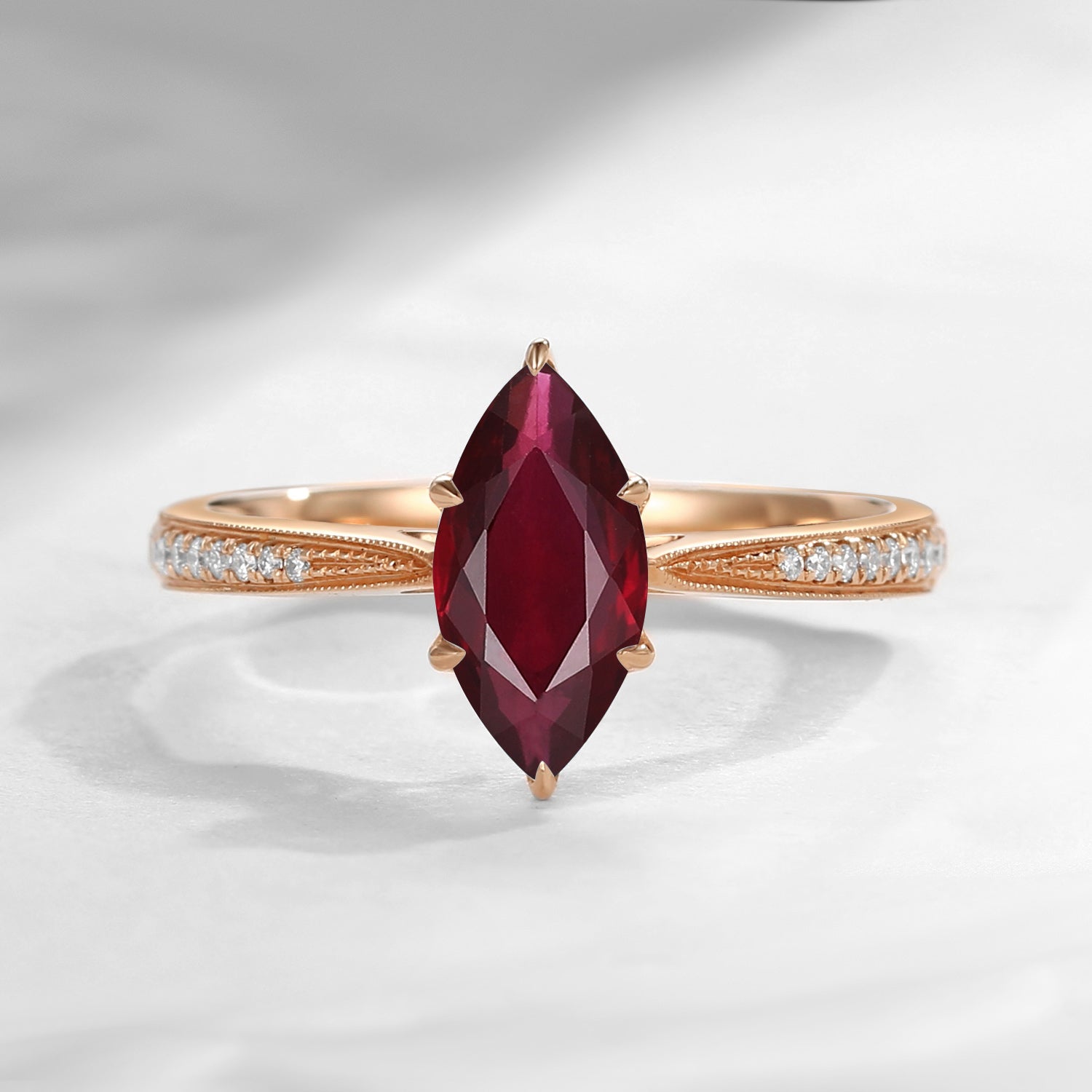 Antique Natural Ruby Engagement Ring Solitaire Marquise Wedding Ring Milgrain Tapered Flower Ring Setting 6 Six Claw Prongs Size Choice