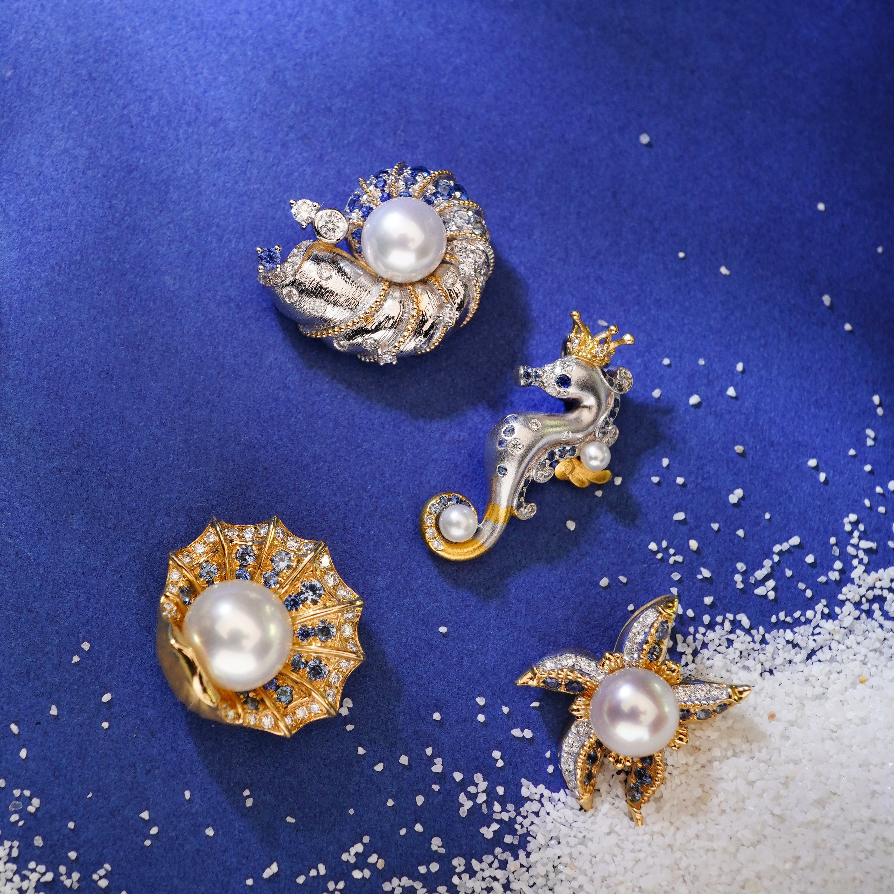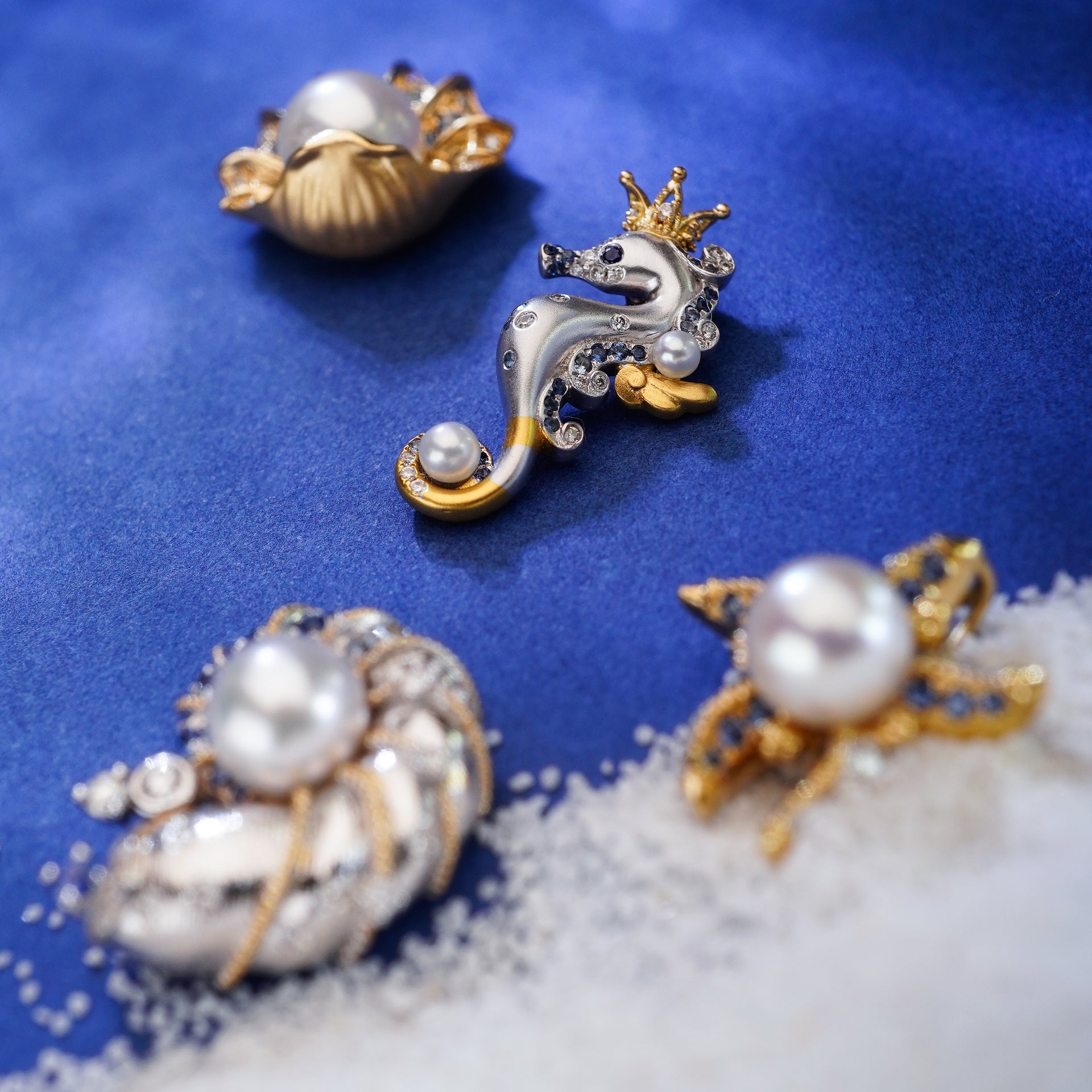 Art Deco Sapphire Freshwater Pearl Sea Horse Inspired Necklace  - Ocean Fantasy