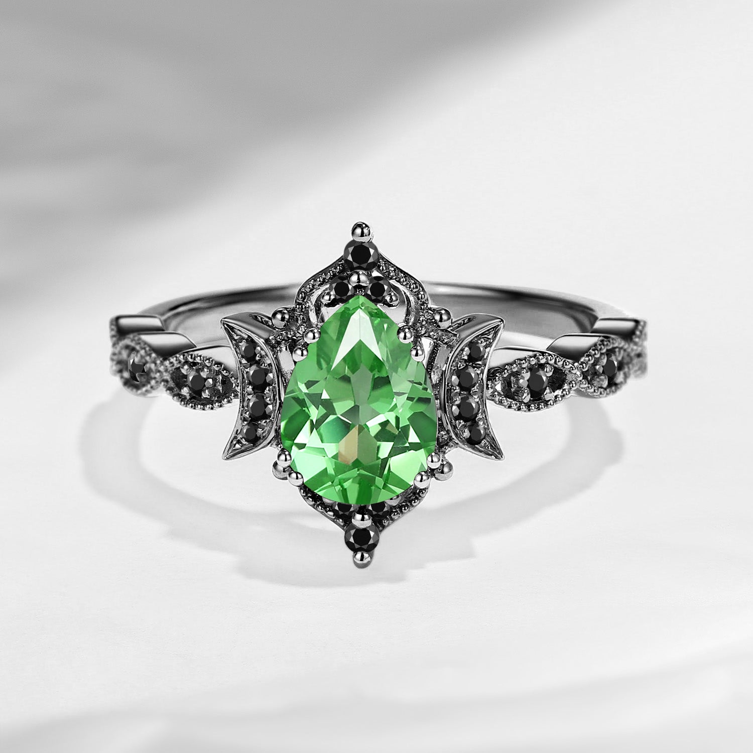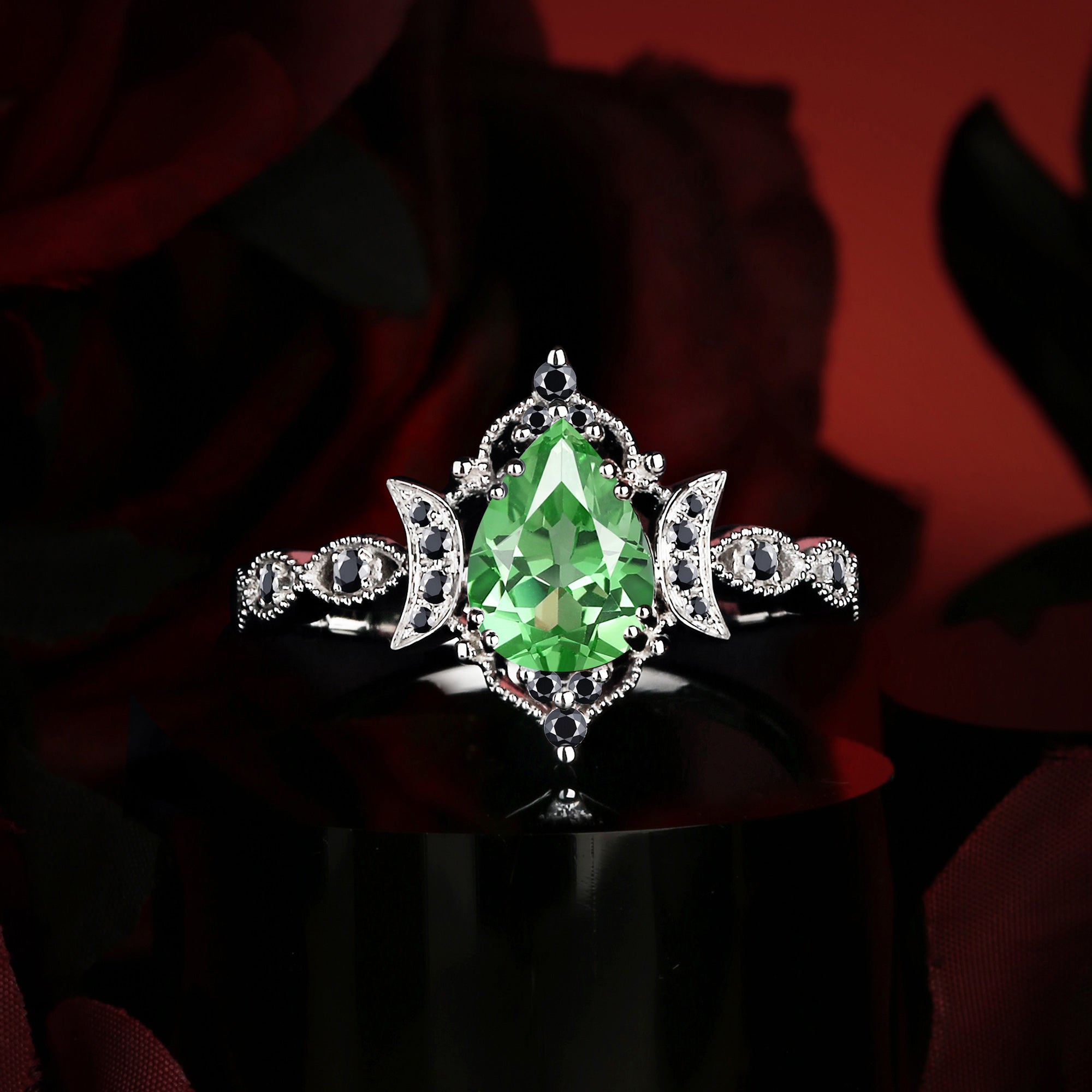 1.5ct Pear Cut Unique Lab Tsavorite Engagement Ring Gemstone Engagement Ring- Eclipse