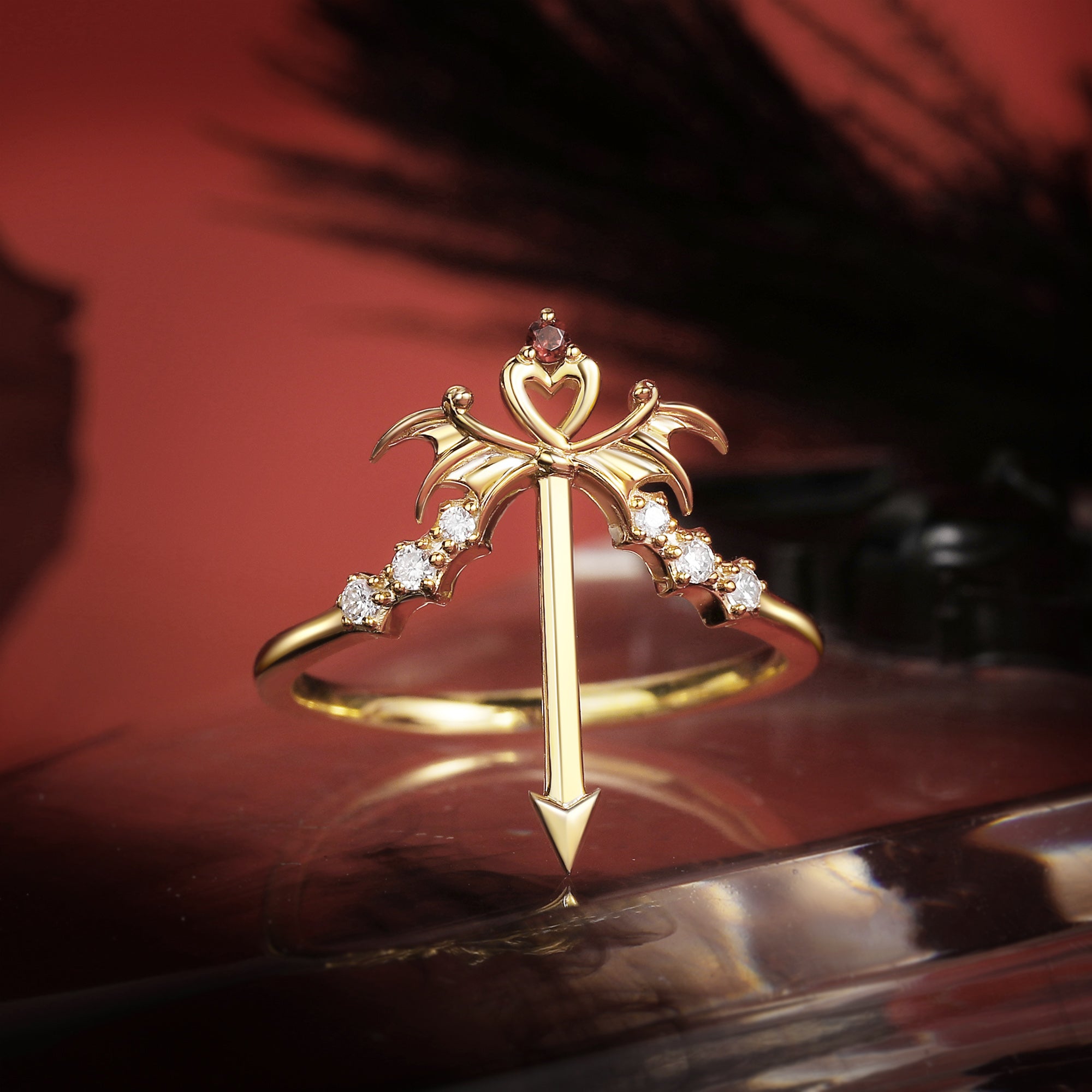 Gothic Bat Wing Inspired Coffin Black Rutilated Quartz Two-Tone Bridal Set 2pcs "Dark Arrow of Love" Valentine's Day Gift