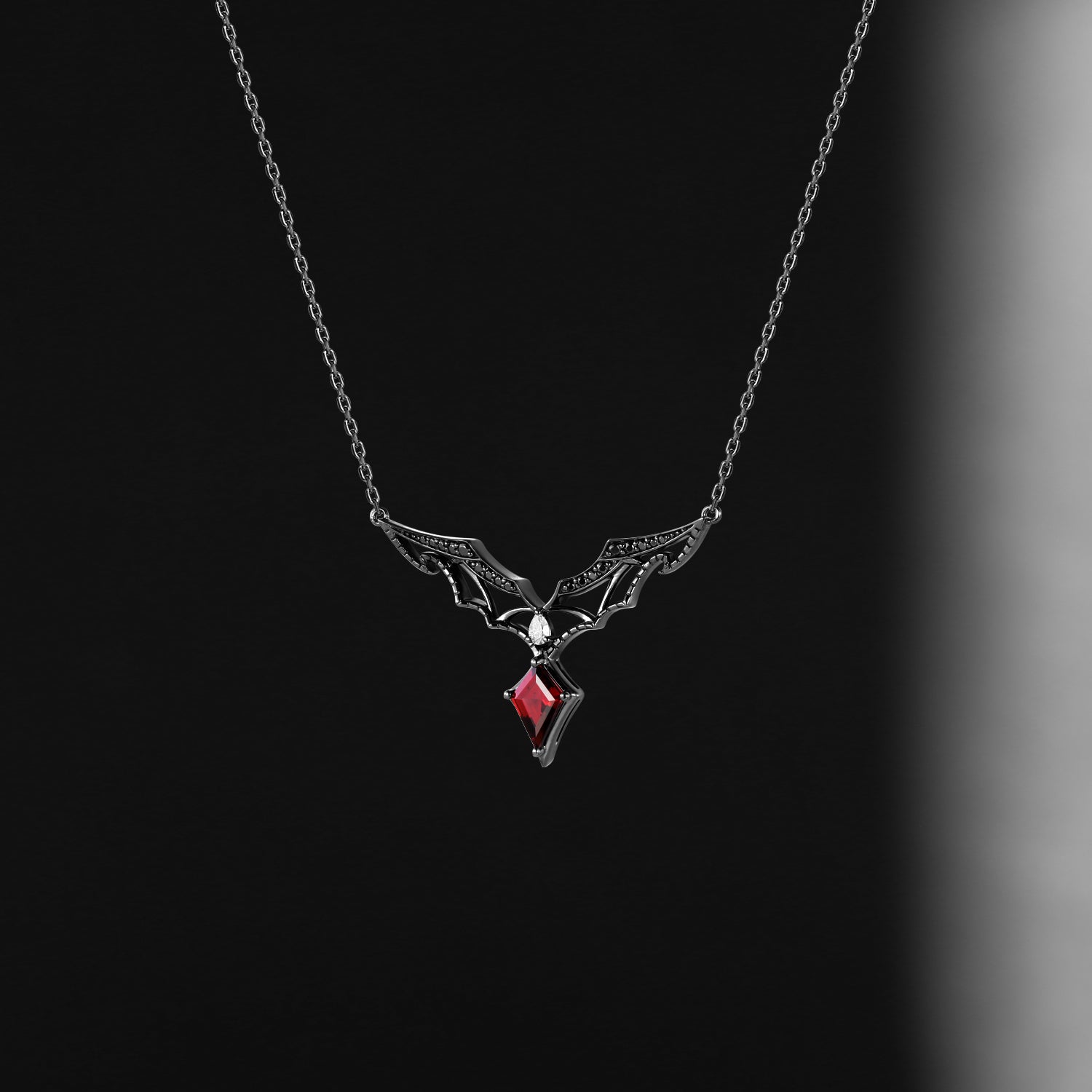 Unique Gothic Kite Cut Garnet Dark Elegance Bat Wing Necklace