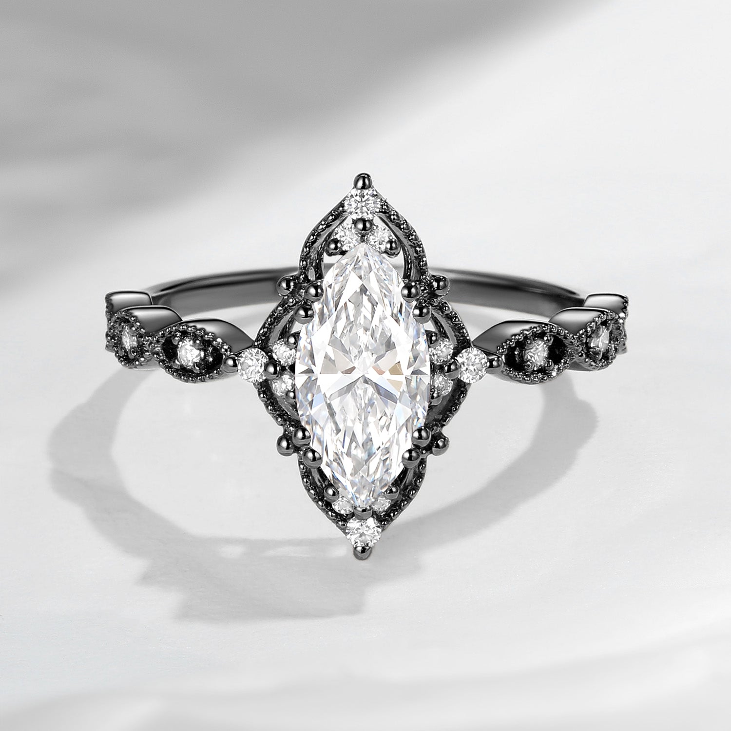 Marquise Lab Diamond Bridal Set 2pcs Lab Diamond Ring Unique Marquise Engagement Ring White Gold Wedding Ring Vintage Style
