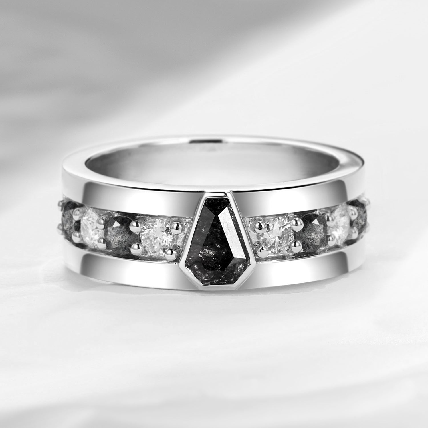 Unique Coffin Cut Herkimer Diamond Wedding Band - King's Scepter