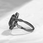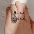 Crescent Moon | Coffin Cut Infinity Galaxy Engagement Ring Black Crystal Bridal Set Antique Ring Art Deco Open Wedding Band
