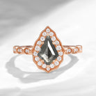 Kite Shaped Salt And Pepper Diamond Halo Engagement Ring