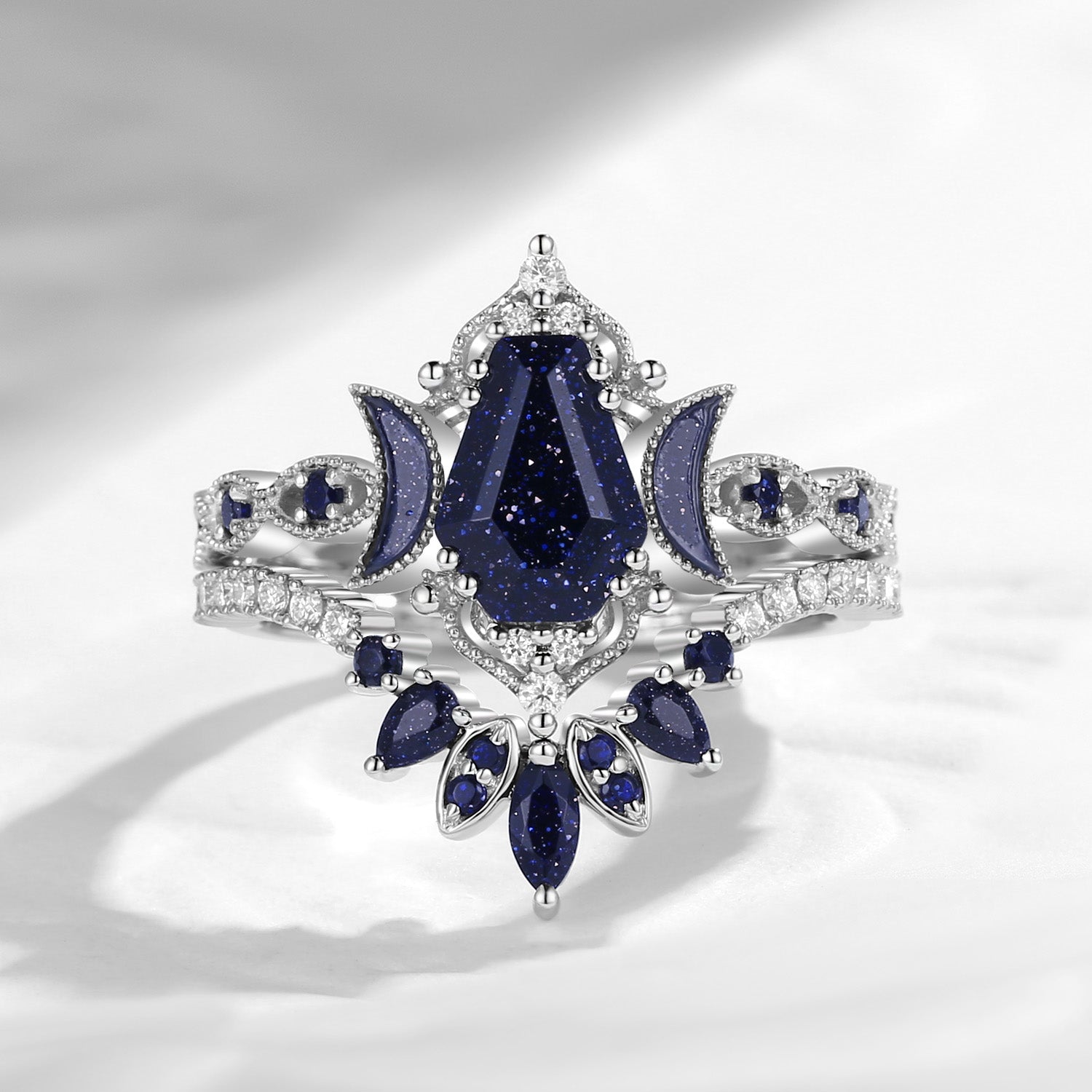Crescent Moon | Coffin Cut Lab Opal 'Ultra Galaxy' Engagement Ring Set 2pcs