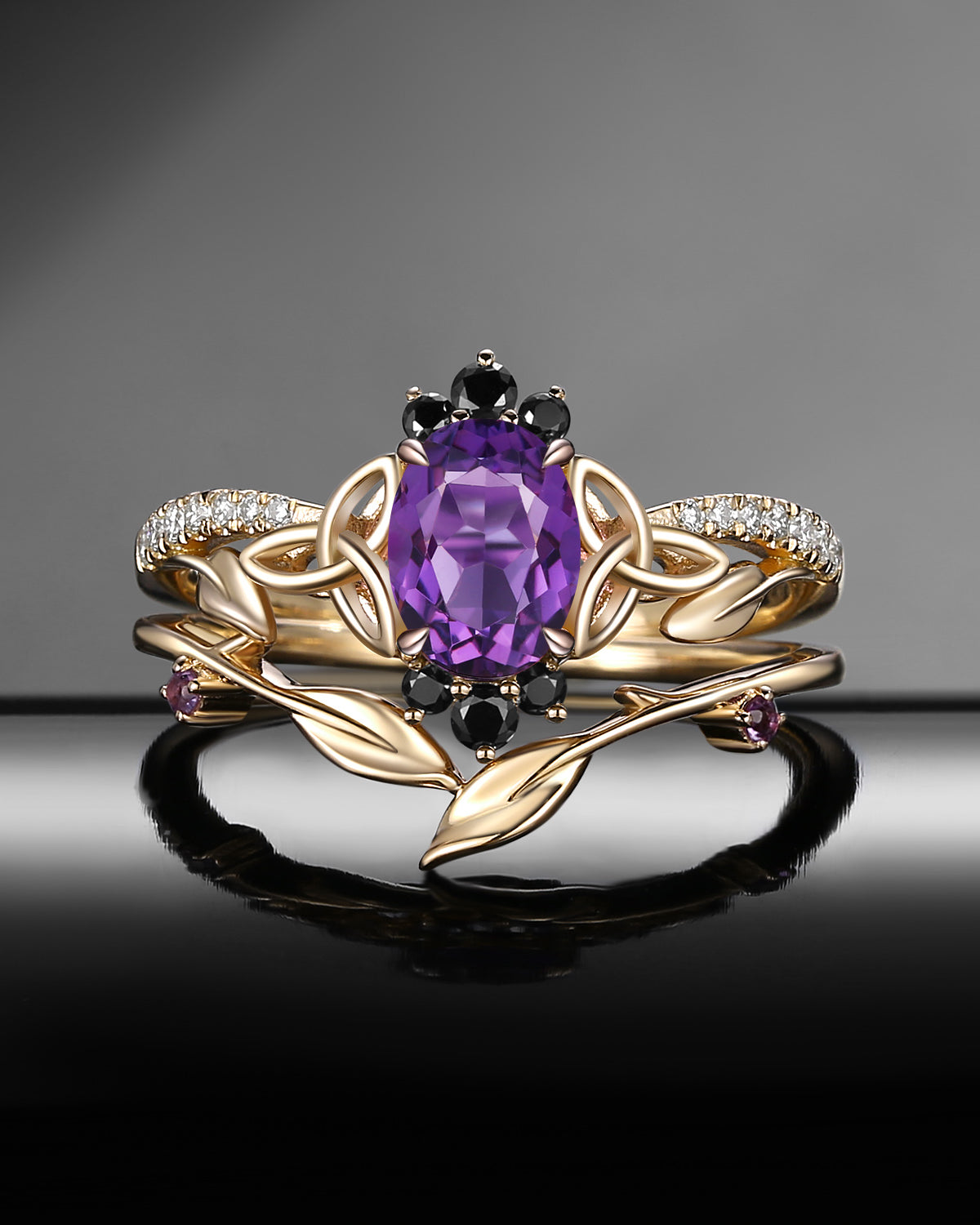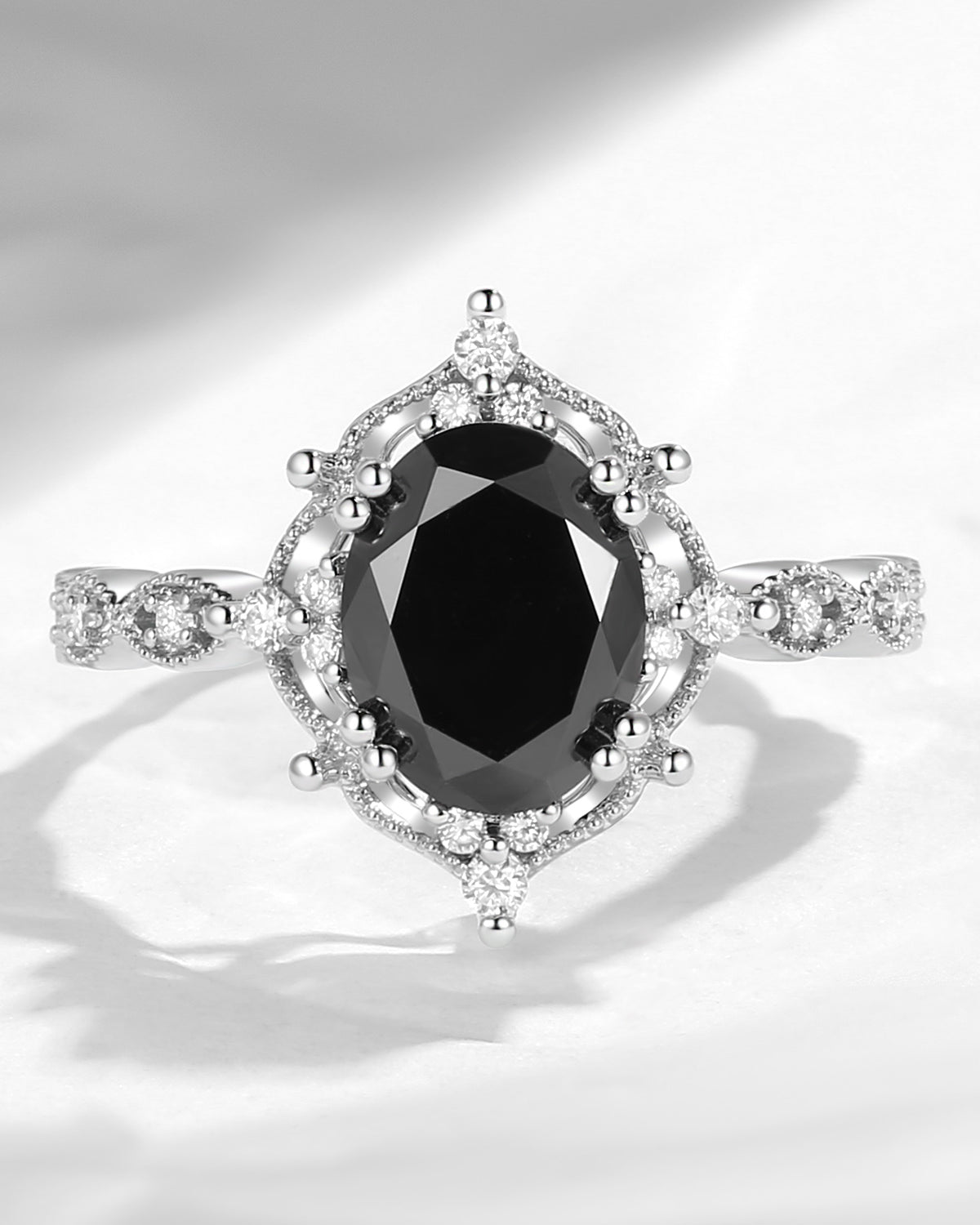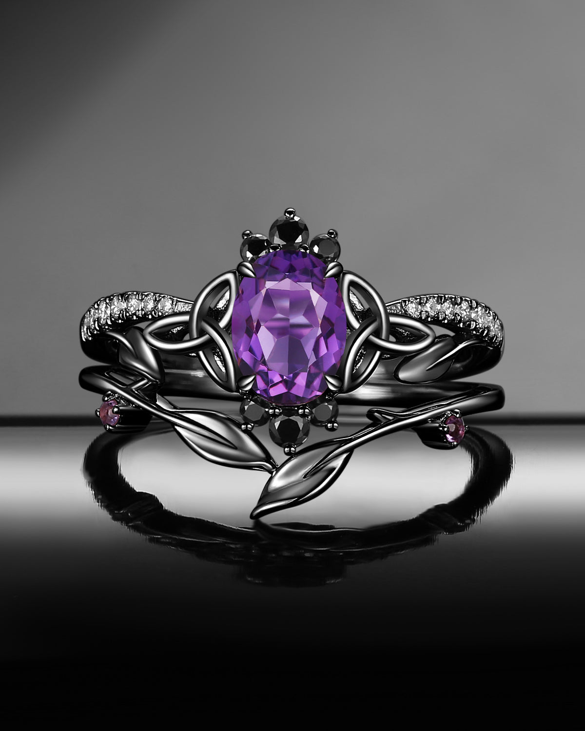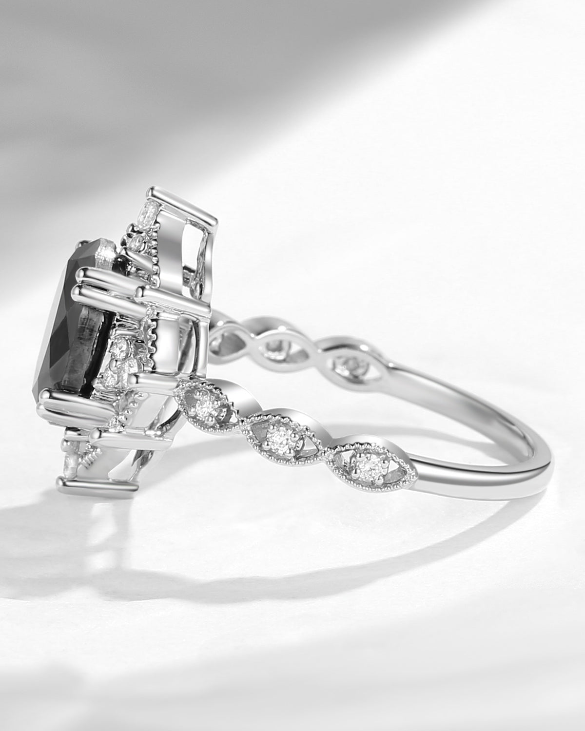 Pure Moon | Fancy Oval Cut Black Rutilated Quartz Engagement Ring Set 2pcs