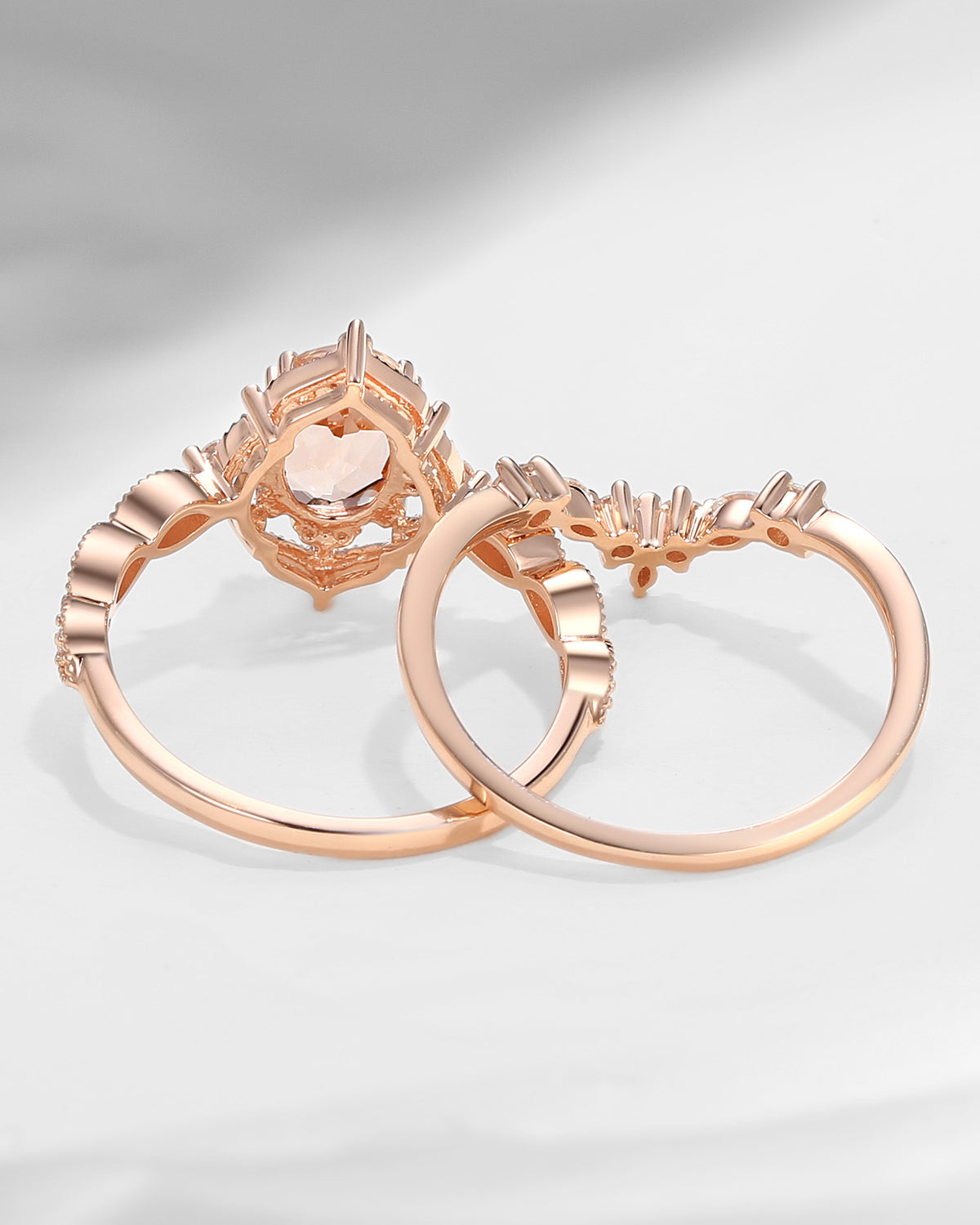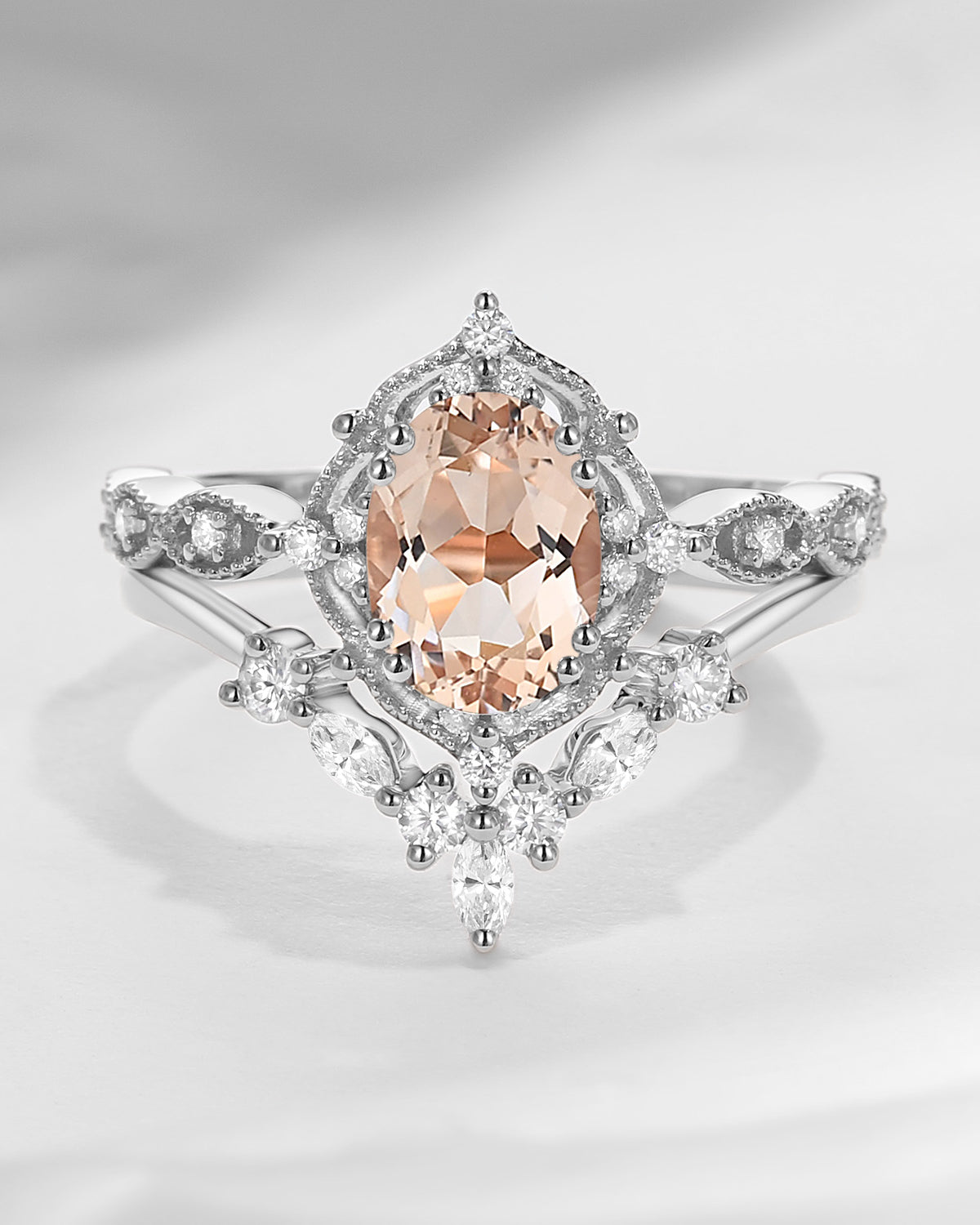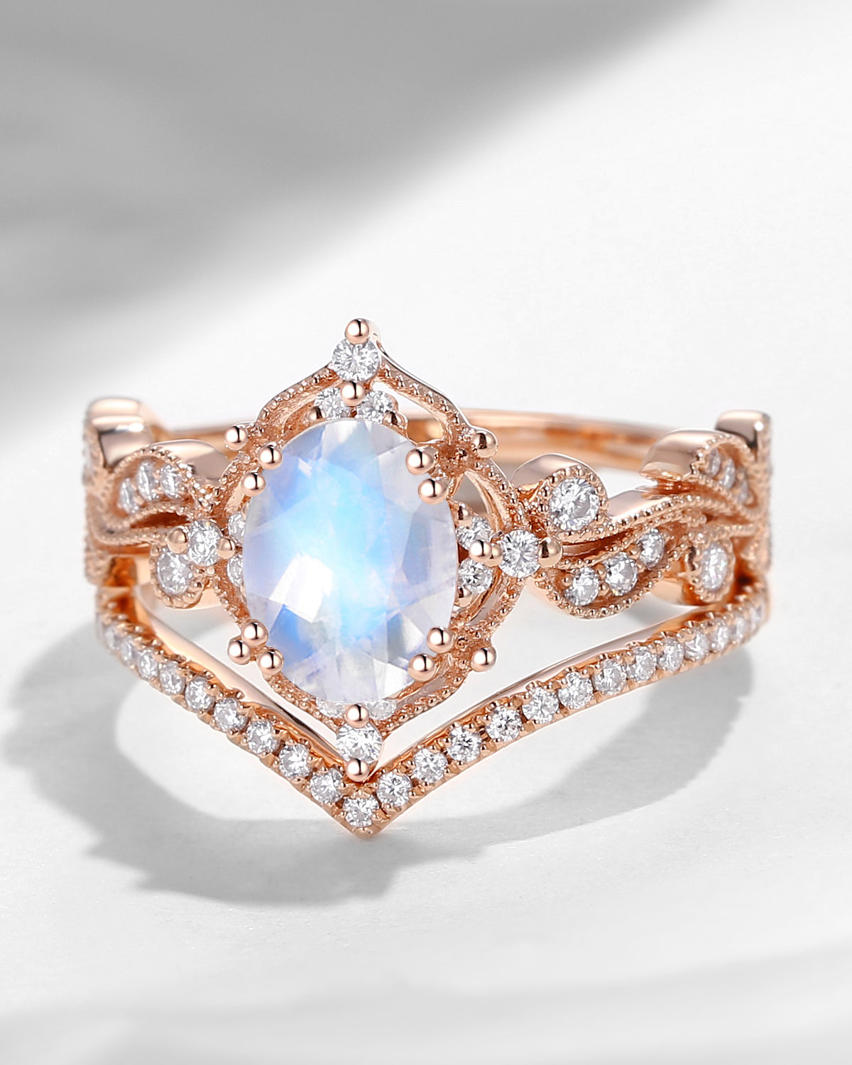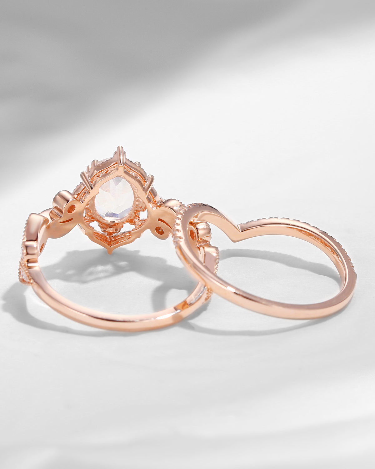 Pure Moon | Fancy Oval Cut Black Rutilated Quartz Engagement Ring Set 2pcs