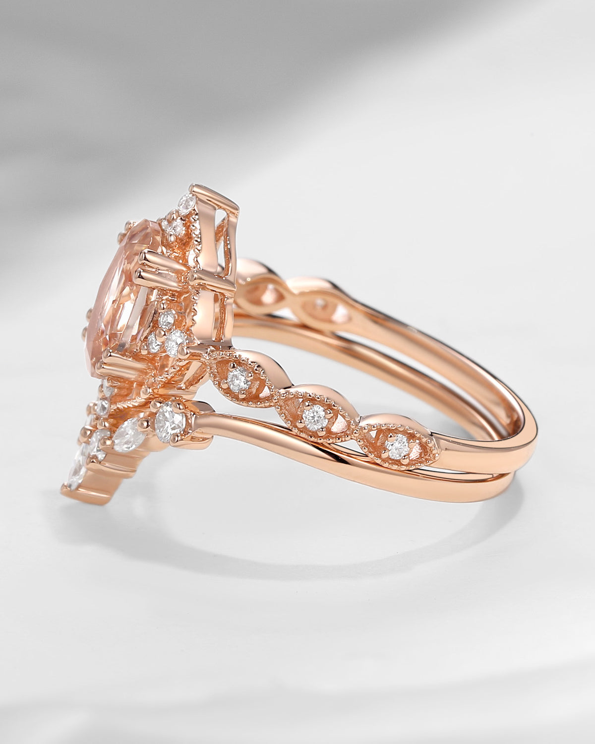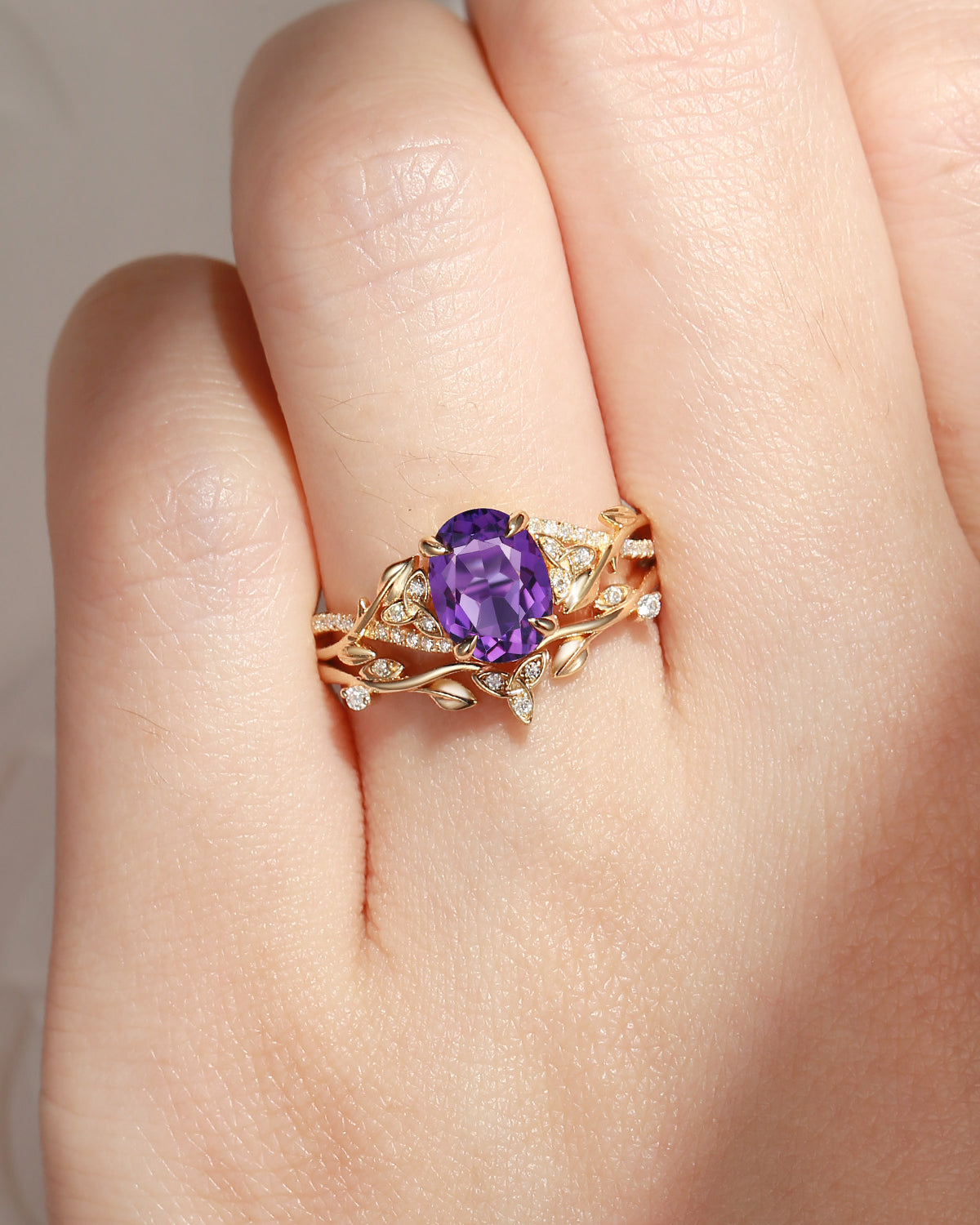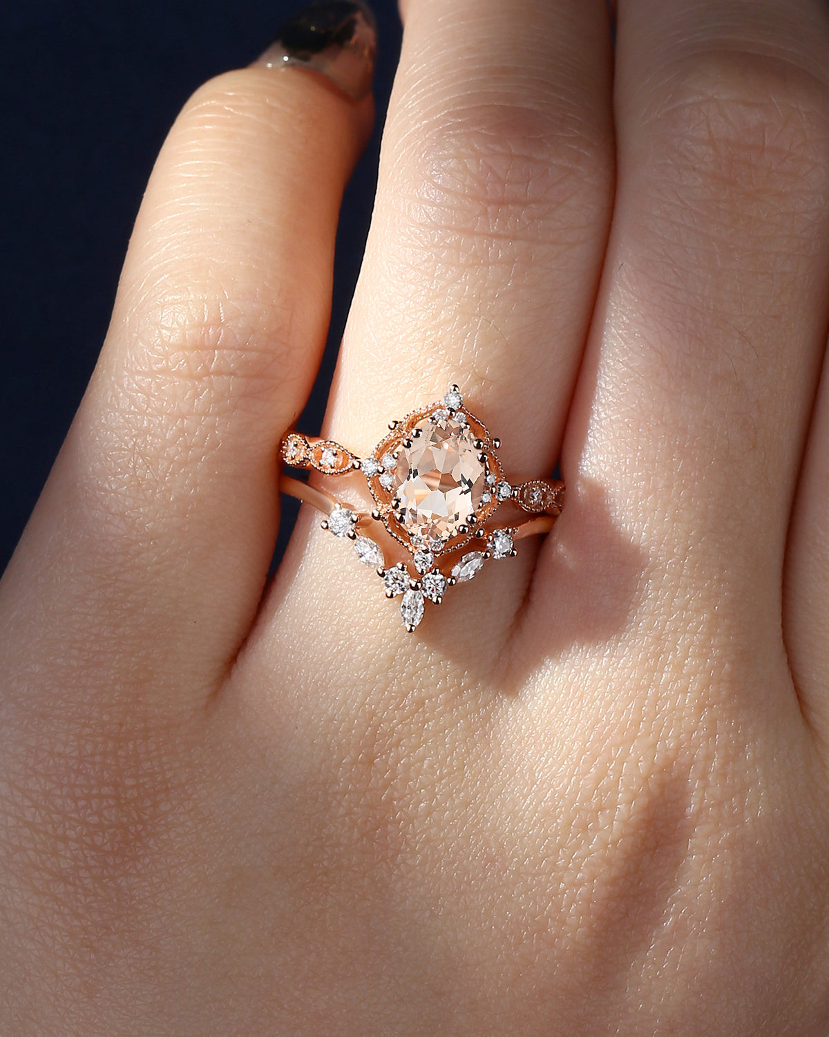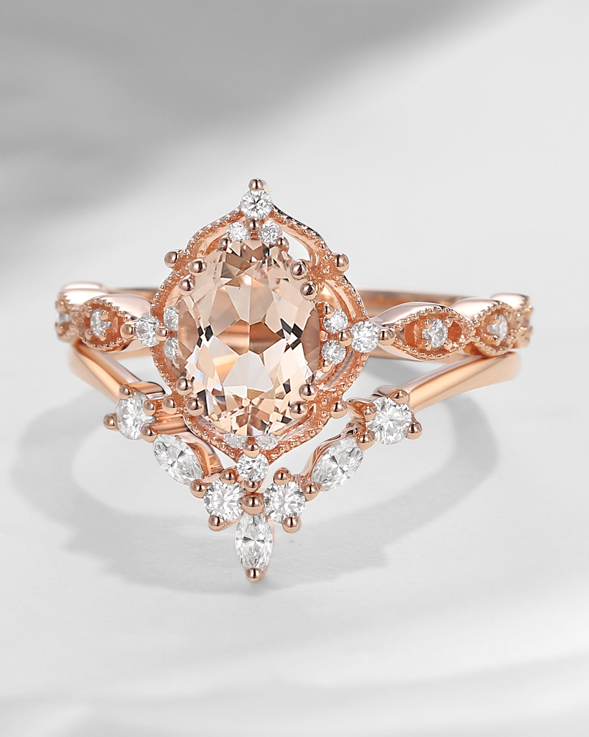 Pure Moon | Fancy Oval Cut Black Rutilated Quartz Engagement Ring Set 2pcs