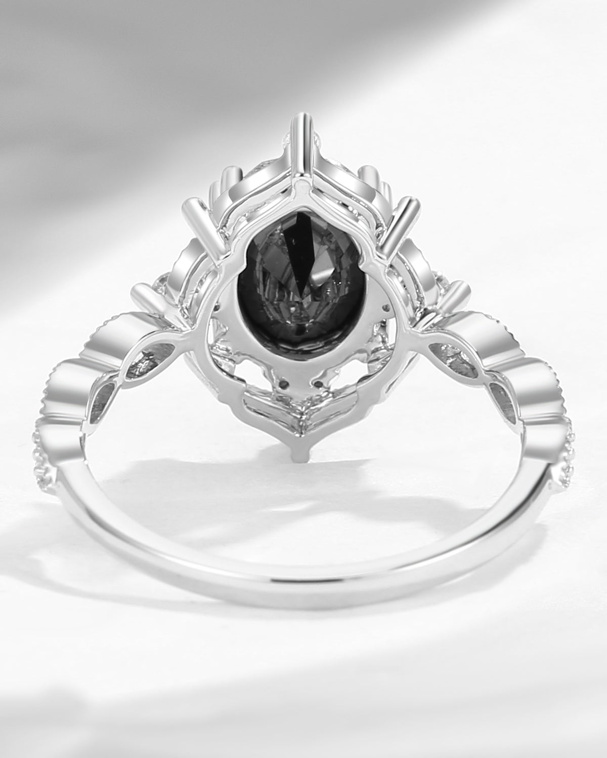 Pure Moon | Oval Cut Black Rutilated Quartz Moon Inspired Engagement Ring