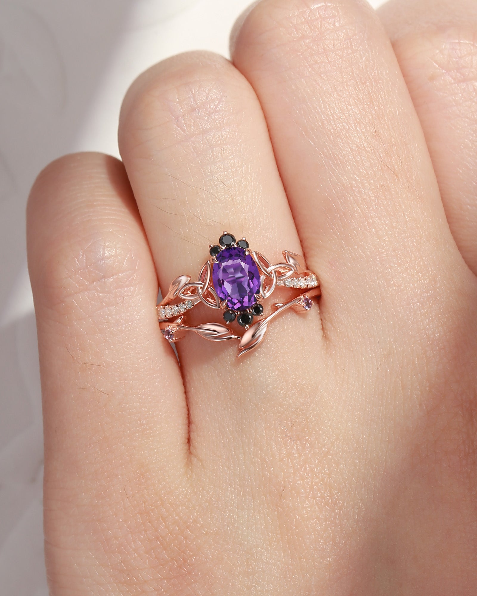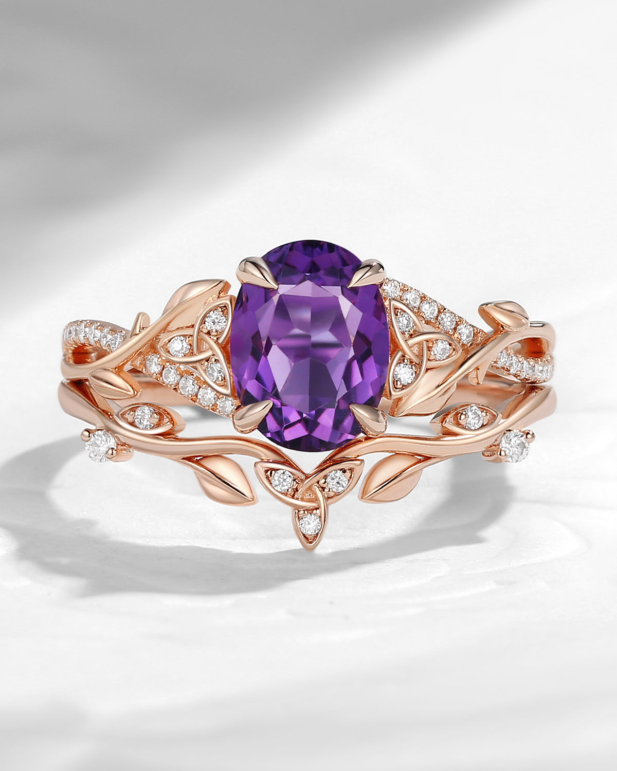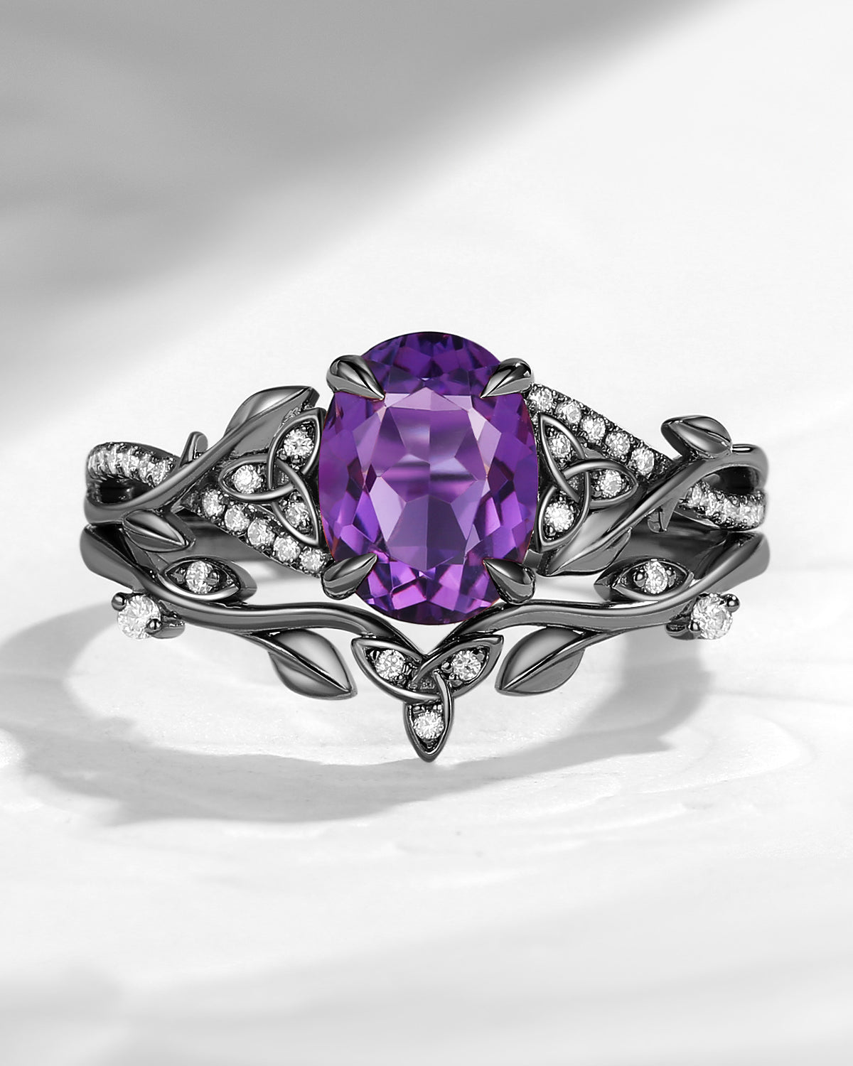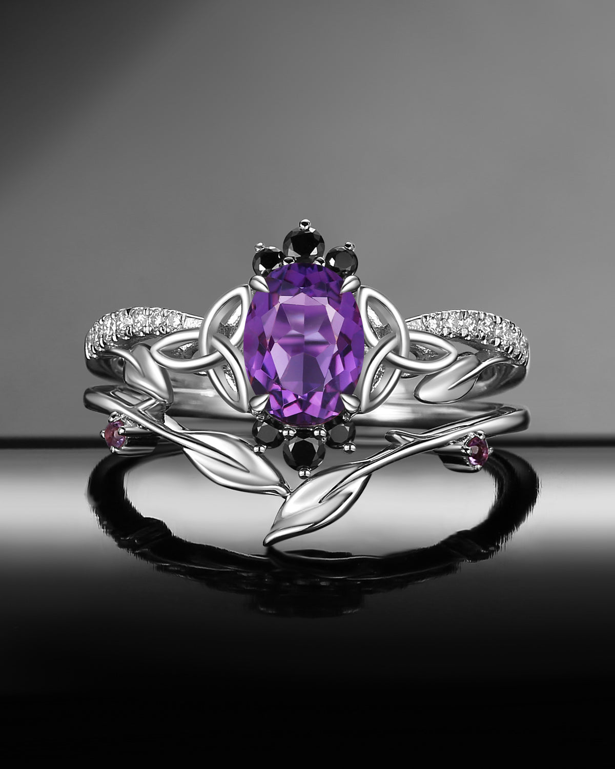 Celtic Moon | Oval Cut Garnet Infinity Celtic Moon Engagement Ring Set 2pcs